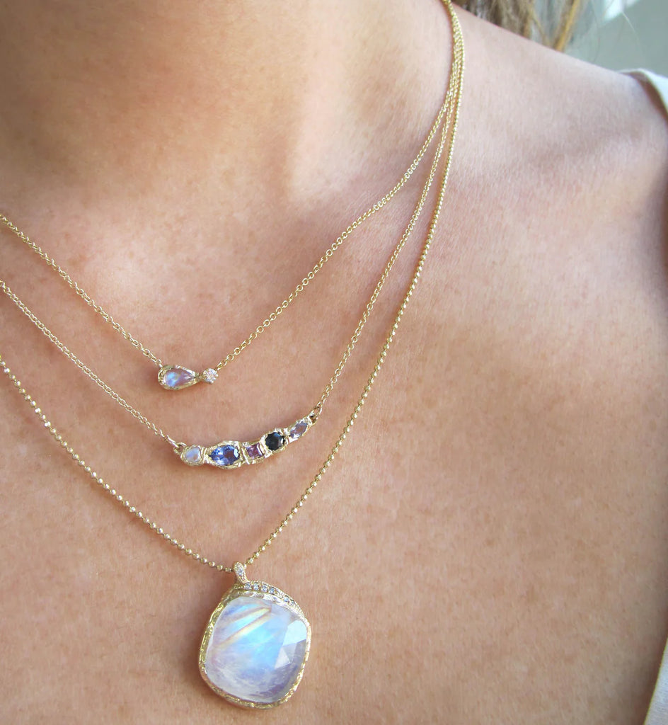 If you’re vibing with soulful, authentic energy, this necklace is your new go-to. Misa’s Journey Treasure Moonlight Necklace blends rainbow moonstone, tanzanite, pink sapphire, and blue sapphire — a dream team of stones known for enhancing intuition, calming the mind, and sparking emotional clarity. Rainbow moonstone, October’s birthstone, is all about unlocking your inner glow and riding the wave of new beginnings.