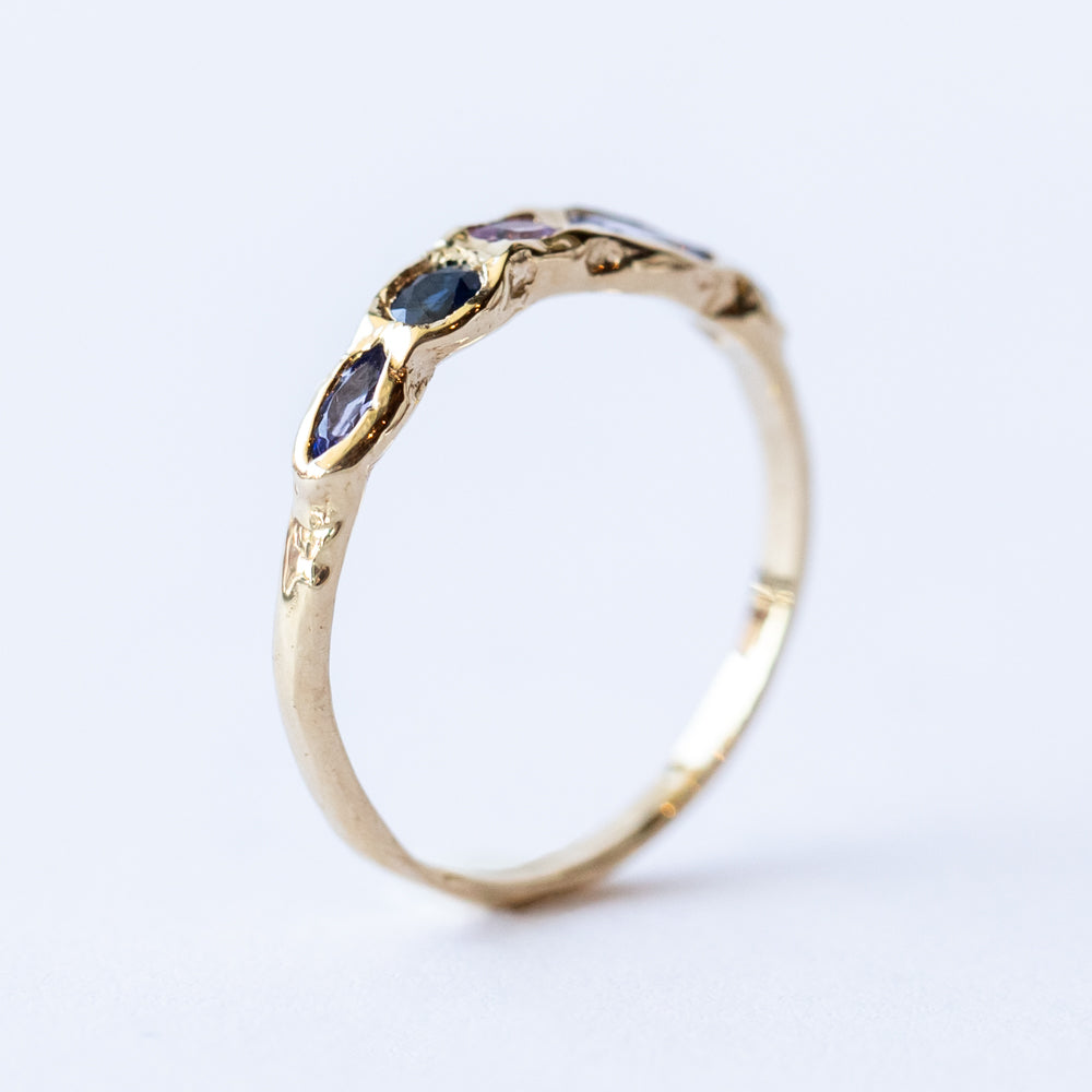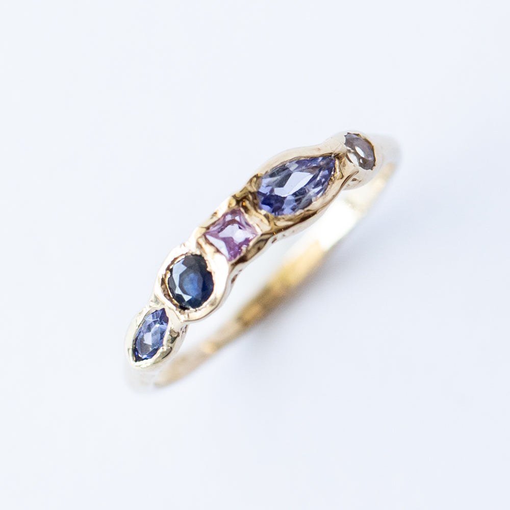 If you're a dreamer, then you're totally going to vibe with Misa's Journey Treasure Moonlight Ring. Crafted in glowing yellow gold, it's set with a mix of rainbow moonstone, tanzanite, pink sapphire, and blue sapphire—stones known for their intuition-boosting, calming, and heart-opening powers.