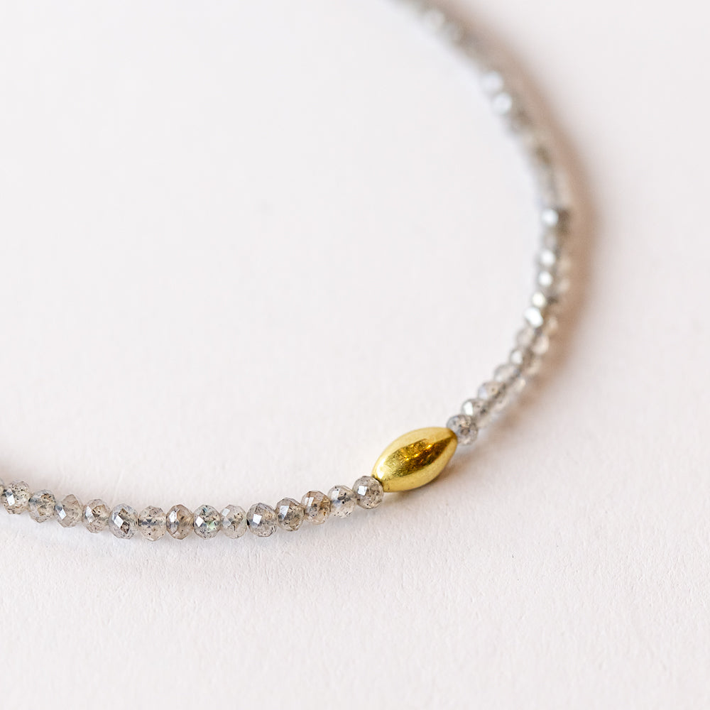 Margaret Solow | Labradorite Beaded Bracelet with Oblong Smooth Gold Bead