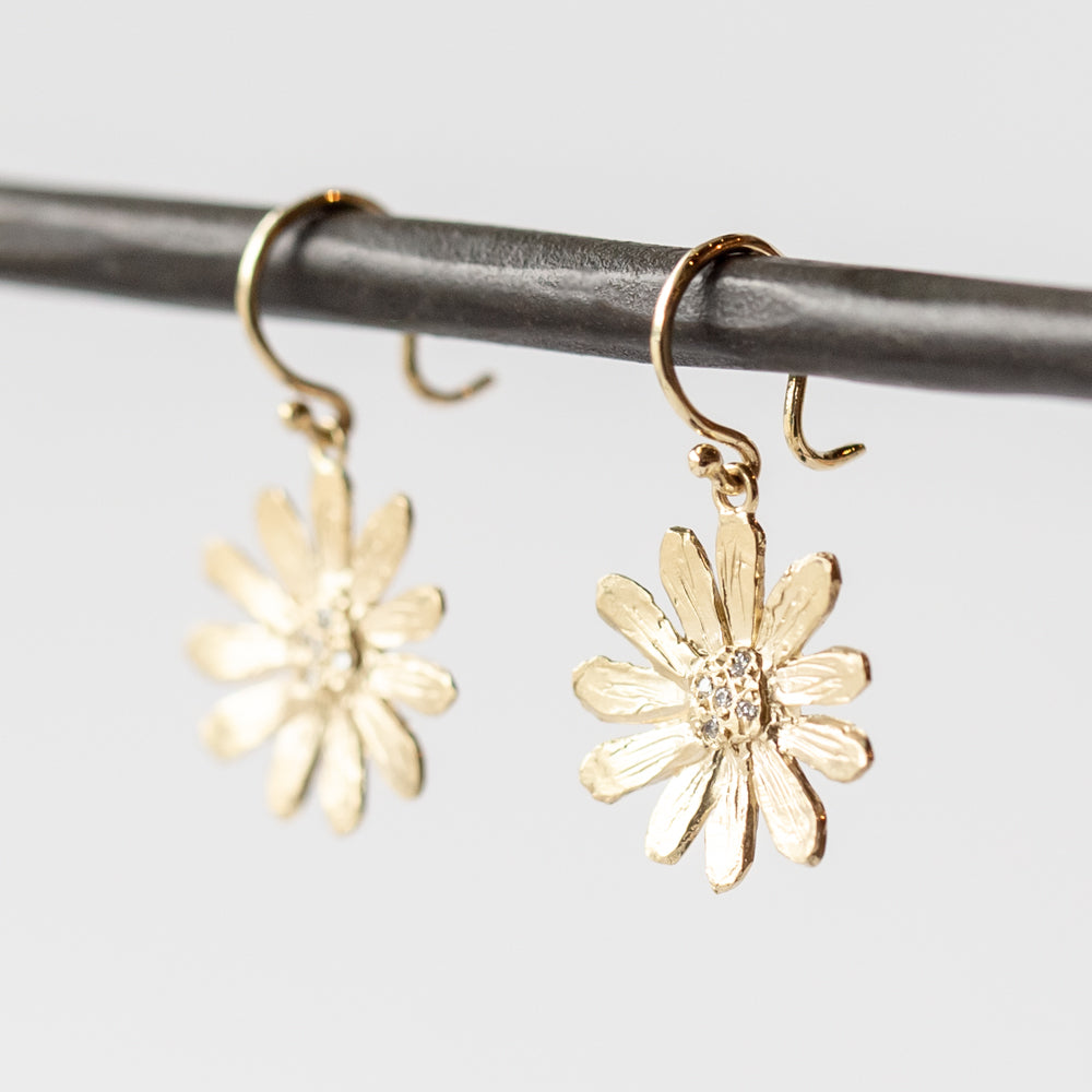 Victoria Cunningham | Medium Daisy Drop Earrings with Pave Diamonds