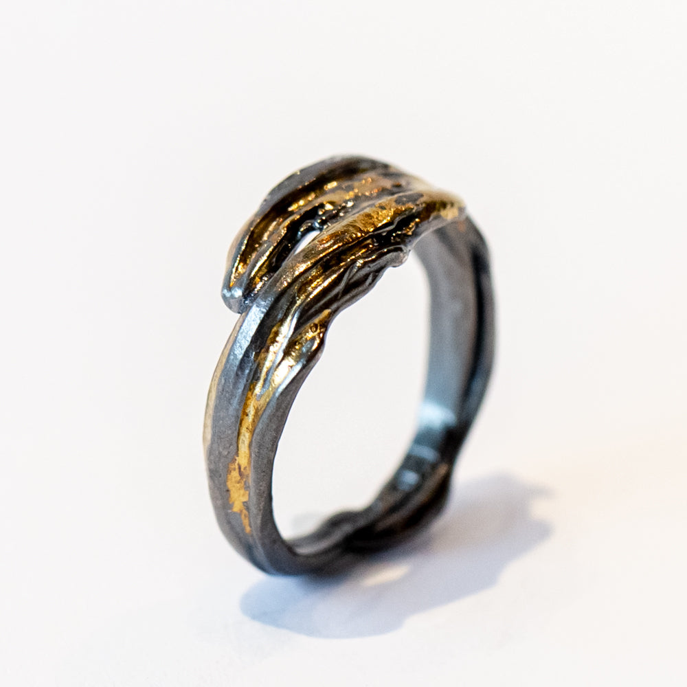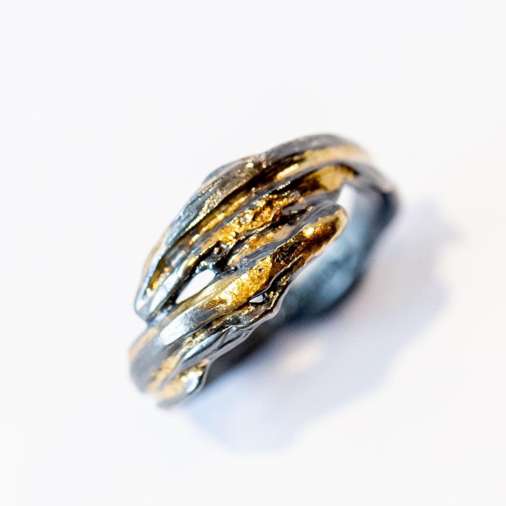 Oxidized sterling silver and 18k yellow gold