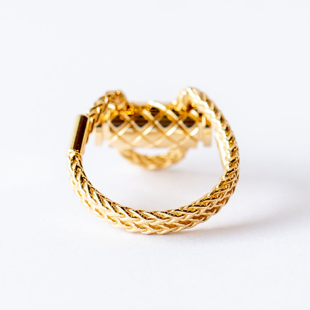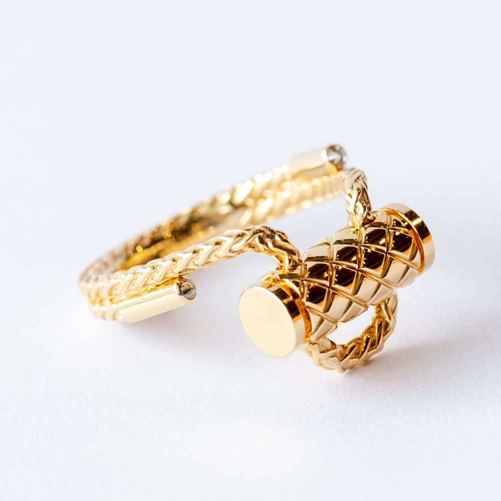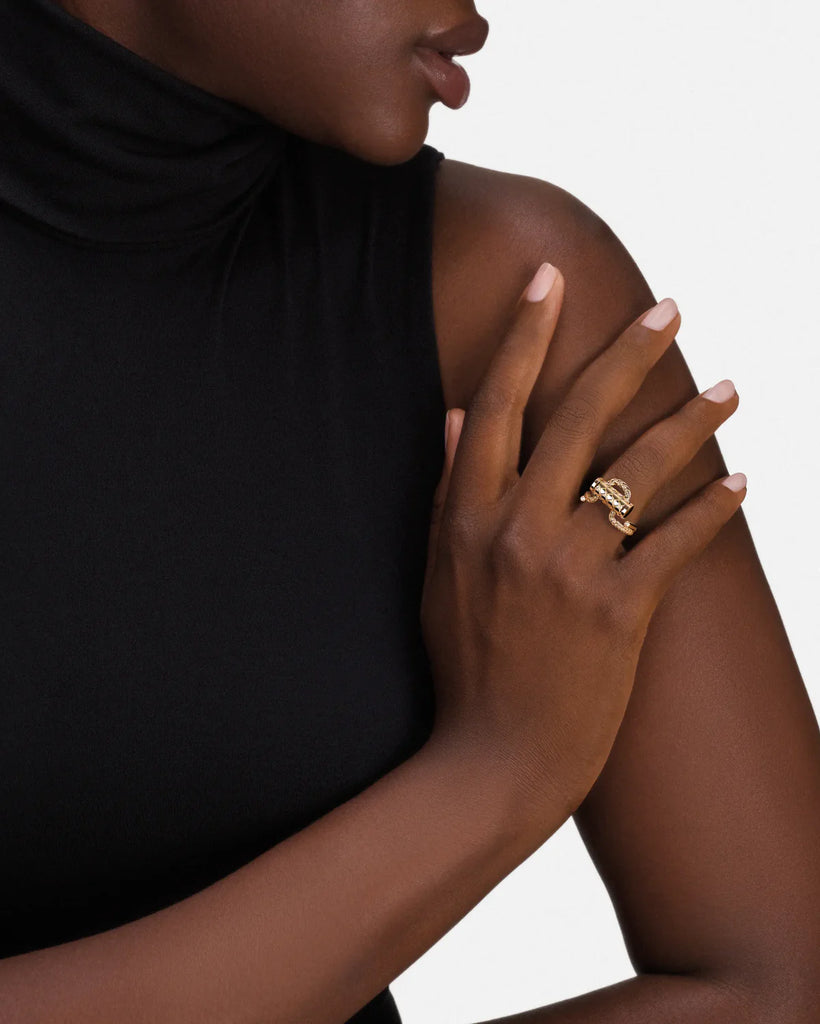 French savoir-faire embraces street style in the Nouvel Heritage Latch collection. Each ring intertwines delicate details with a modern edge. The Gold Latch ring showcases the collection's signature aesthetic, it ends with two inverted diamonds, introducing an additional touch of brilliance.