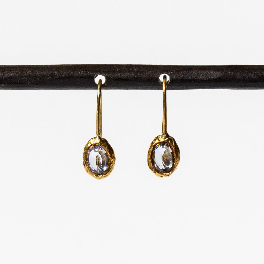Page Sargisson | Denim Blue Oval Sapphire Fixed Hook Earrings