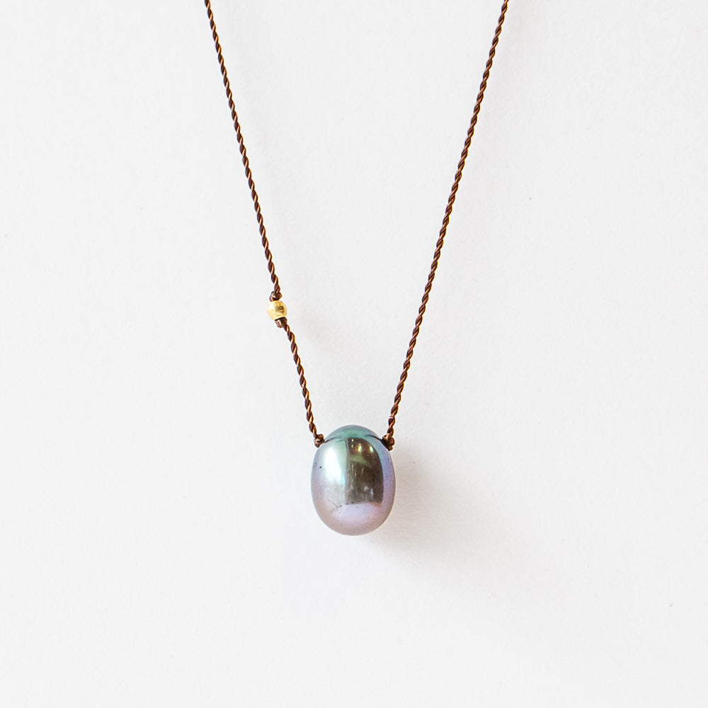 Margaret Solow | Peacock Gray Teardrop Pearl Cord Necklace