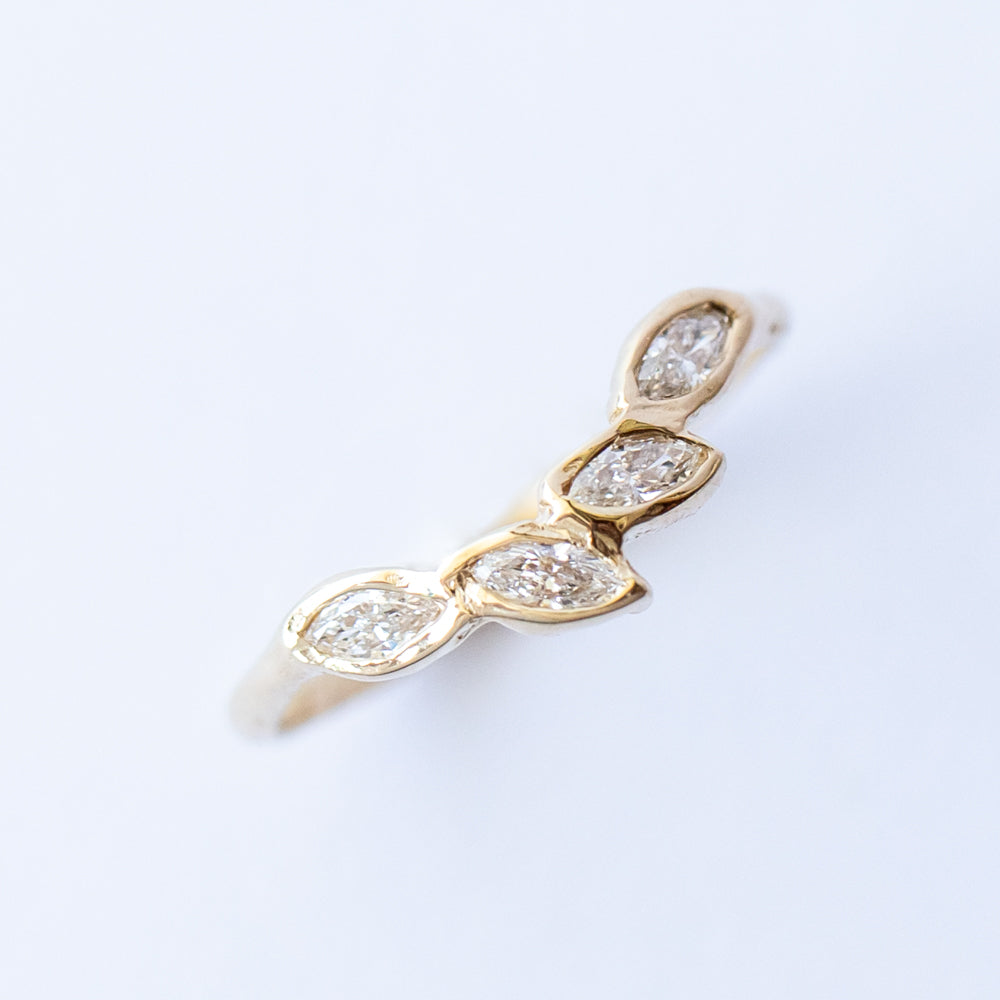 Flex your flower power with the Petal Diamond Ring from Misa — a fresh take on classic sparkle that feels like a little bloom on your finger. This unique diamond ring doubles as a contour ring, designed to hug your engagement ring with its delicate floral band vibe. These white marquise diamonds catch the light and turn heads, unfolding like petals that say, “I’m here, I’m radiant, and I’m owning it.”