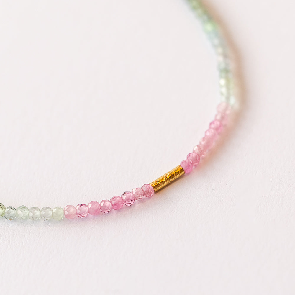 Margaret Solow | Pink and Green Tourmaline Beaded Bracelet with Gold Tube Bead