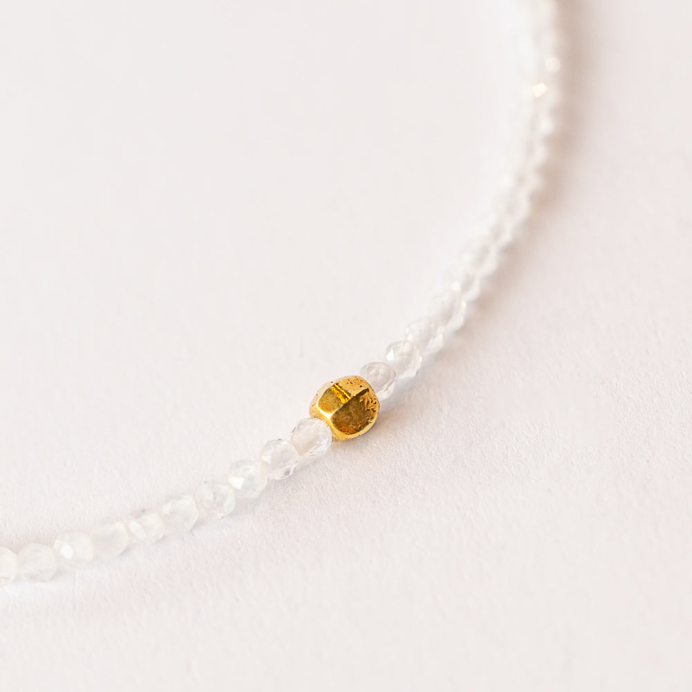 Rainbow moonstone beads catch the light with subtle flashes of color, paired with a hexagonal 18k gold bead that adds a modern edge. Known for enhancing intuition and calm, rainbow moonstone makes this bracelet a little wearable moment of clarity. Stack it with your favorites or let it shine solo—it’s effortless luxe that works with everything in your rotation.