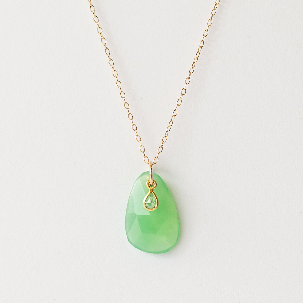 Margaret Solow | Sea Green Tourmaline Drop Necklace with Tiny Diamond Dangle