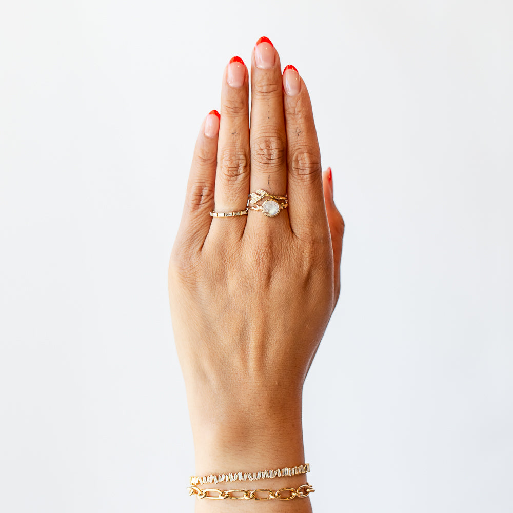 This ring is a subtle stunner on its own and plays beautifully in a stack, even as a contour wedding band with your engagement ring! Inspired by nature, made for everyday magic.