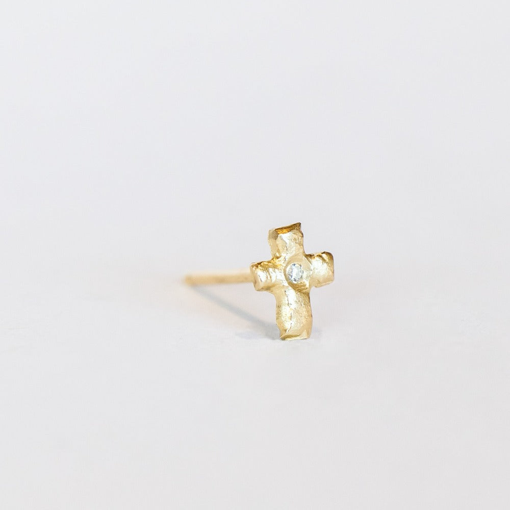 Victoria Cunningham | Tiny Cross Stud Earring with Diamond (Single)