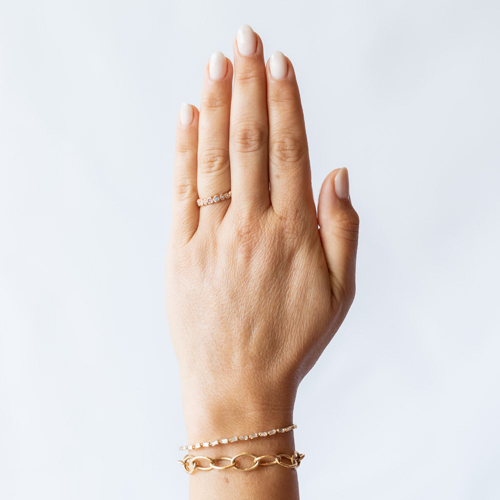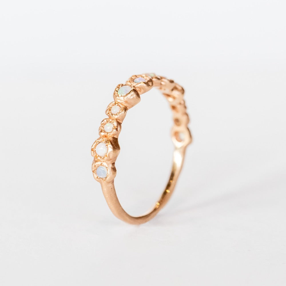 Undulating surface shape and textures are a home to tiny little opals of bright light. Filling in your shadow, this spectacular band balances your auroral properties.