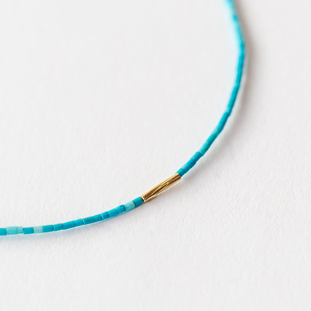 Margaret Solow | Tiny Turquoise Beaded Bracelet with Gold Tube Bead