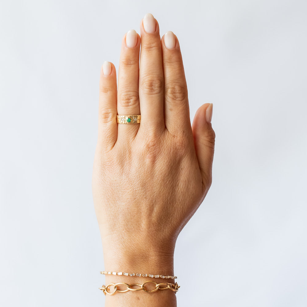 Communion by Joy | Warrior Light Band with Emerald and Diamonds