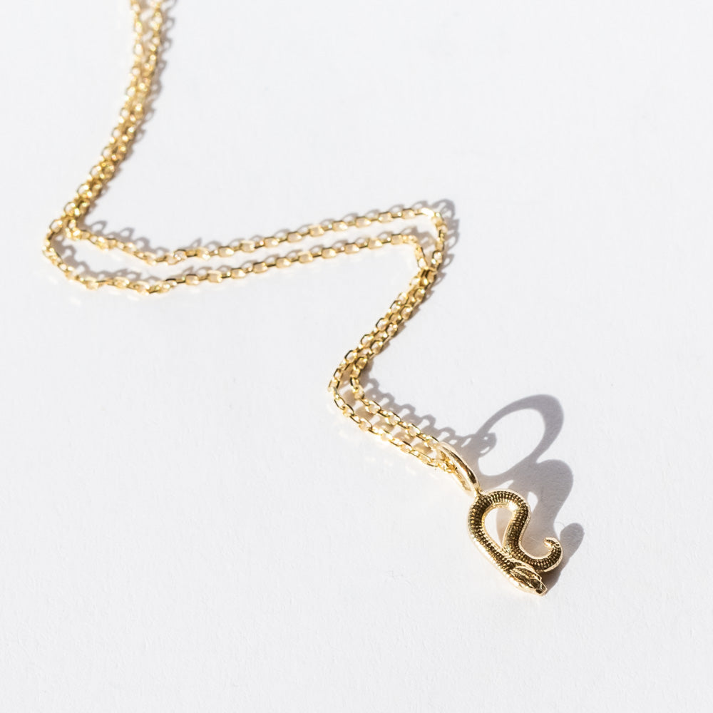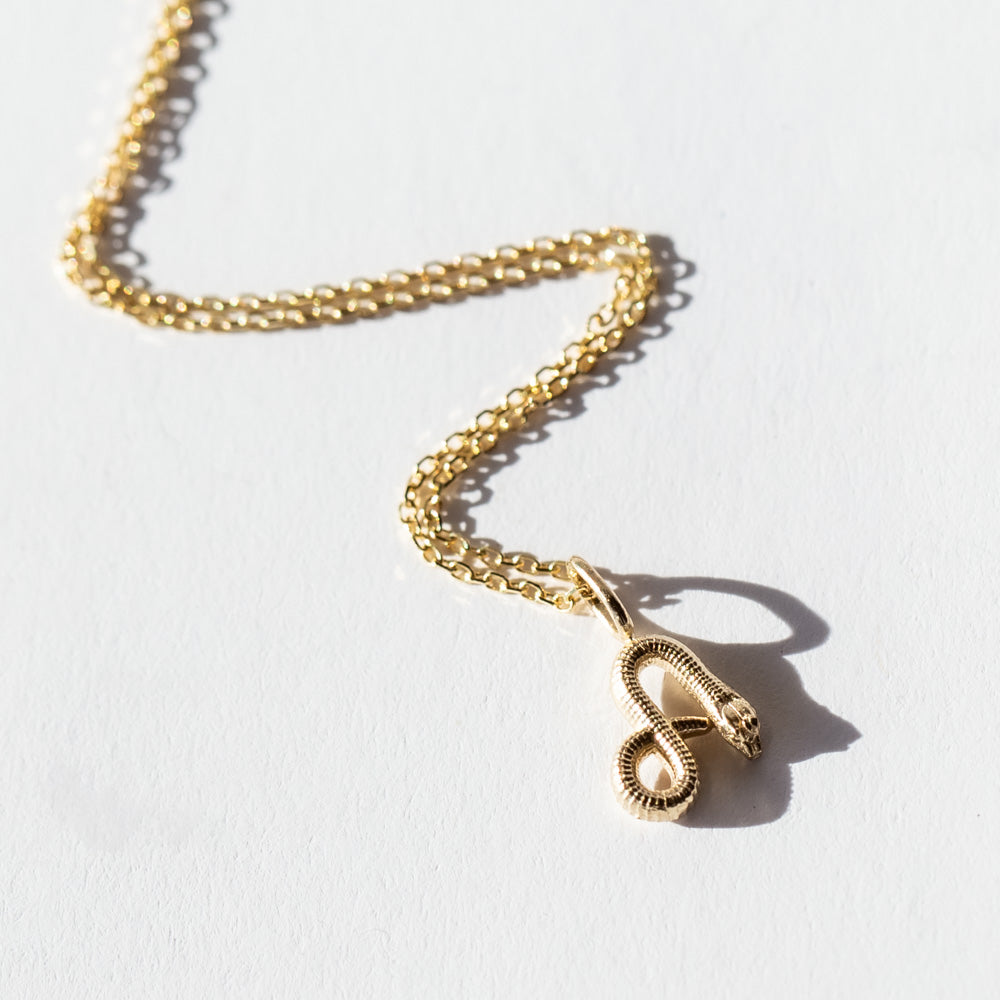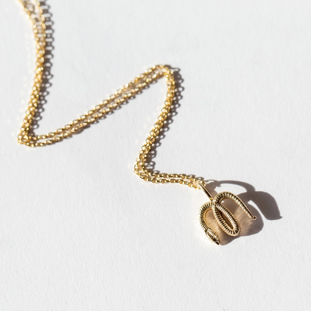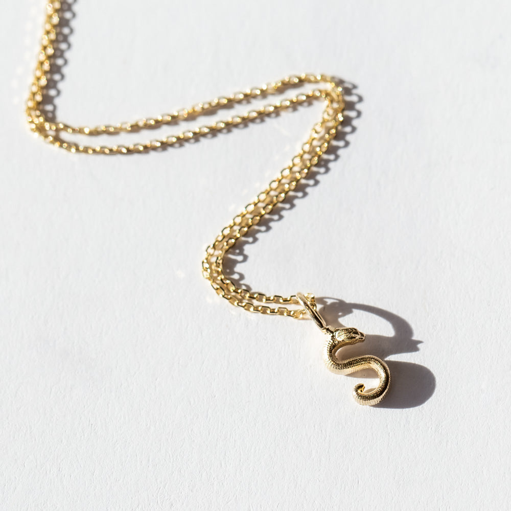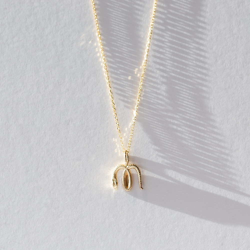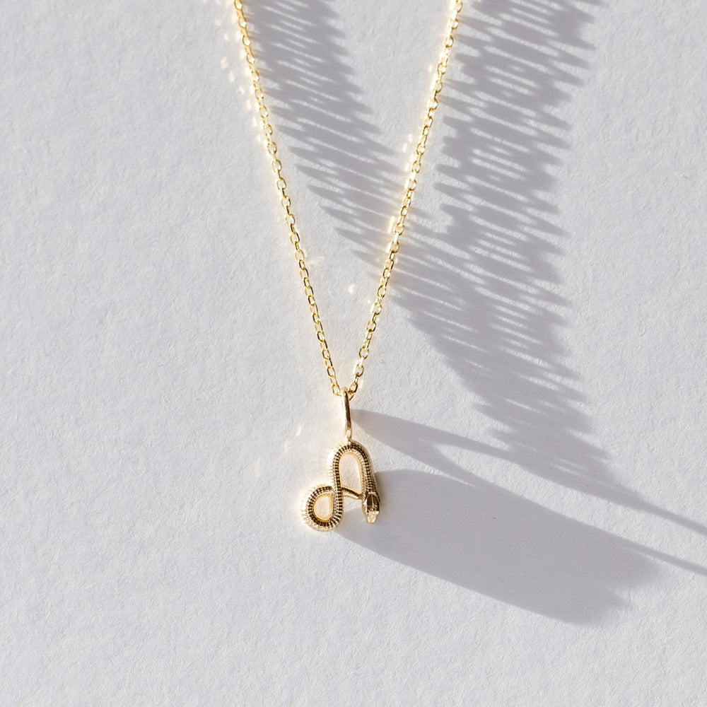 Add a touch of fierce elegance to your personal style with Digby & Iona's gold snake initial pendant. Featuring a sleek, coiled snake design that wraps into your chosen initial, this pendant is both a delicate statement piece and a personal symbol. Handcrafted in solid gold, it combines modern edge with timeless charm, making it perfect for layering or as a standalone accent.