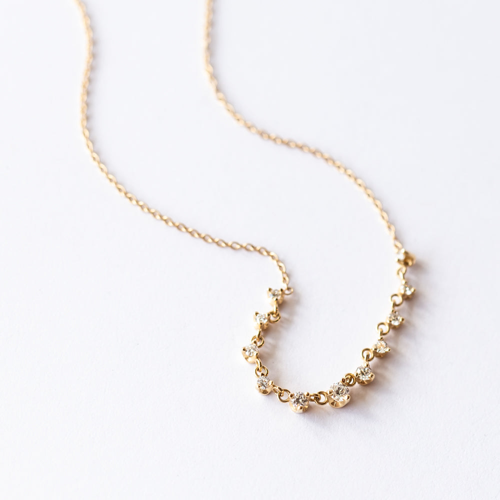 Go all in on sparkle with this diamond necklace from Zoe Chicco. At the center of a classic yellow gold cable chain hang 11 graduated-size round diamonds, prong set and linked together to form a row of brilliance. This stunning diamond necklace is beautiful on its own or layered with other necklaces in your collection