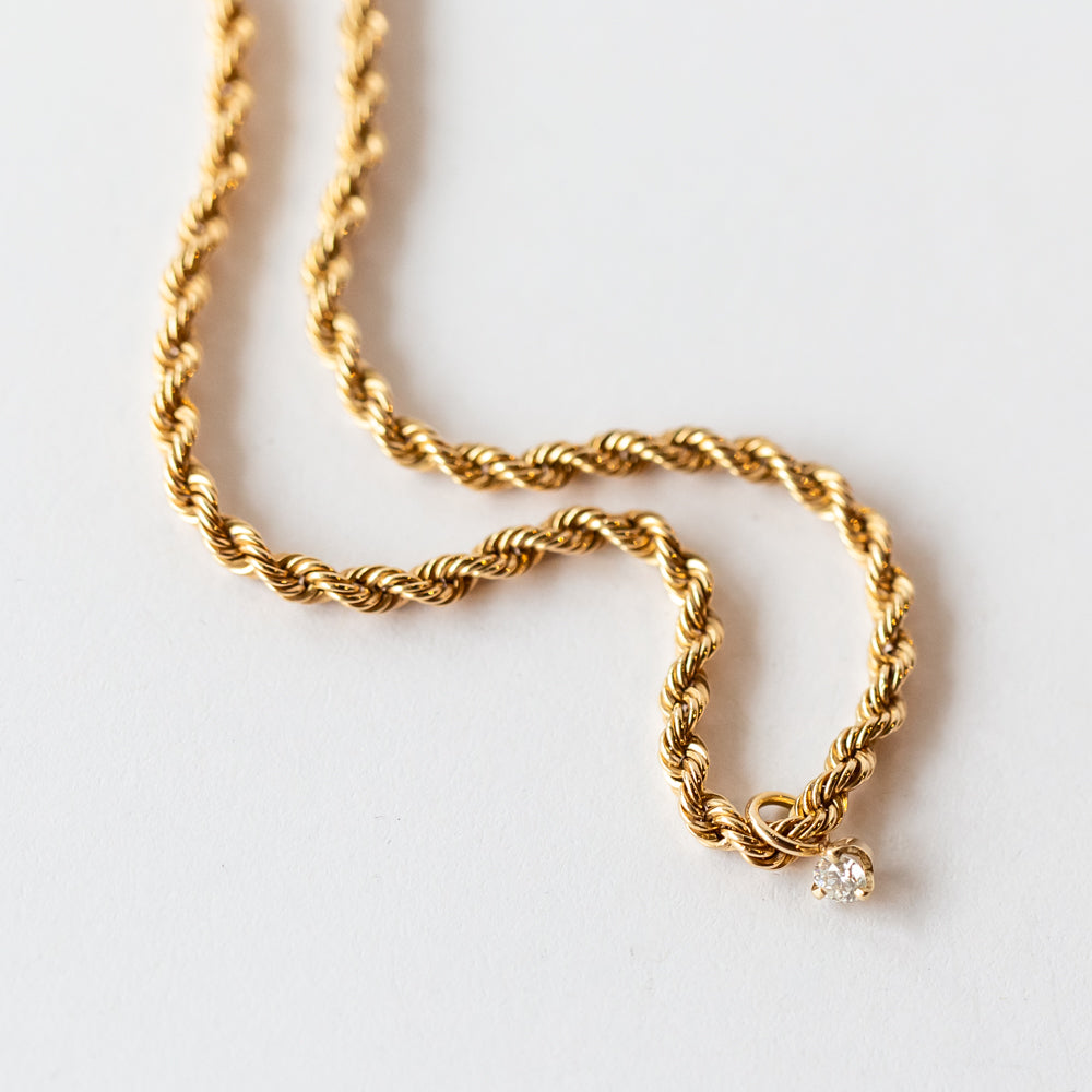 Zoe Chicco | Medium Rope Chain Necklace with a Dangling Diamond