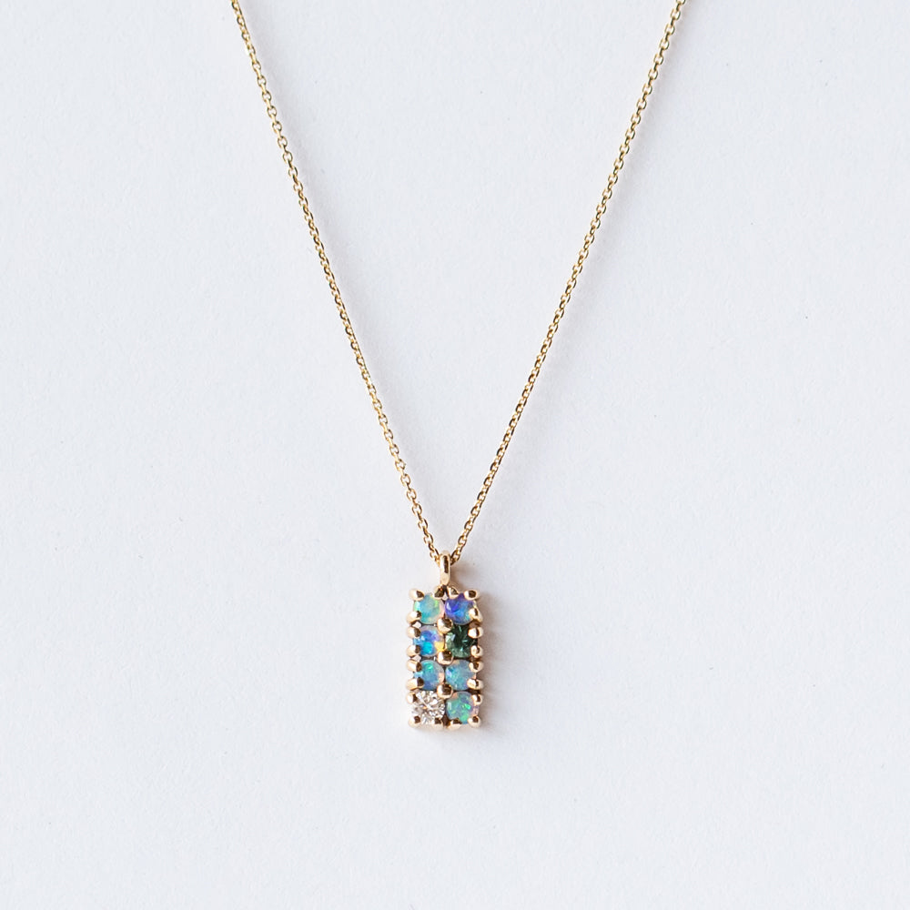 Wwake’s Opal, Diamond and Tourmaline Lattice Necklace turns gemstones into wearable art. A delicate vertical grid of shimmering gems—soft opal glow, accented by a sparkling diamond and rich teal tourmaline—come together in a balanced pattern that’s anything but basic. This necklace adds just the right pop of color and sparkle to everything from a crisp white tee to your favorite date-night look.