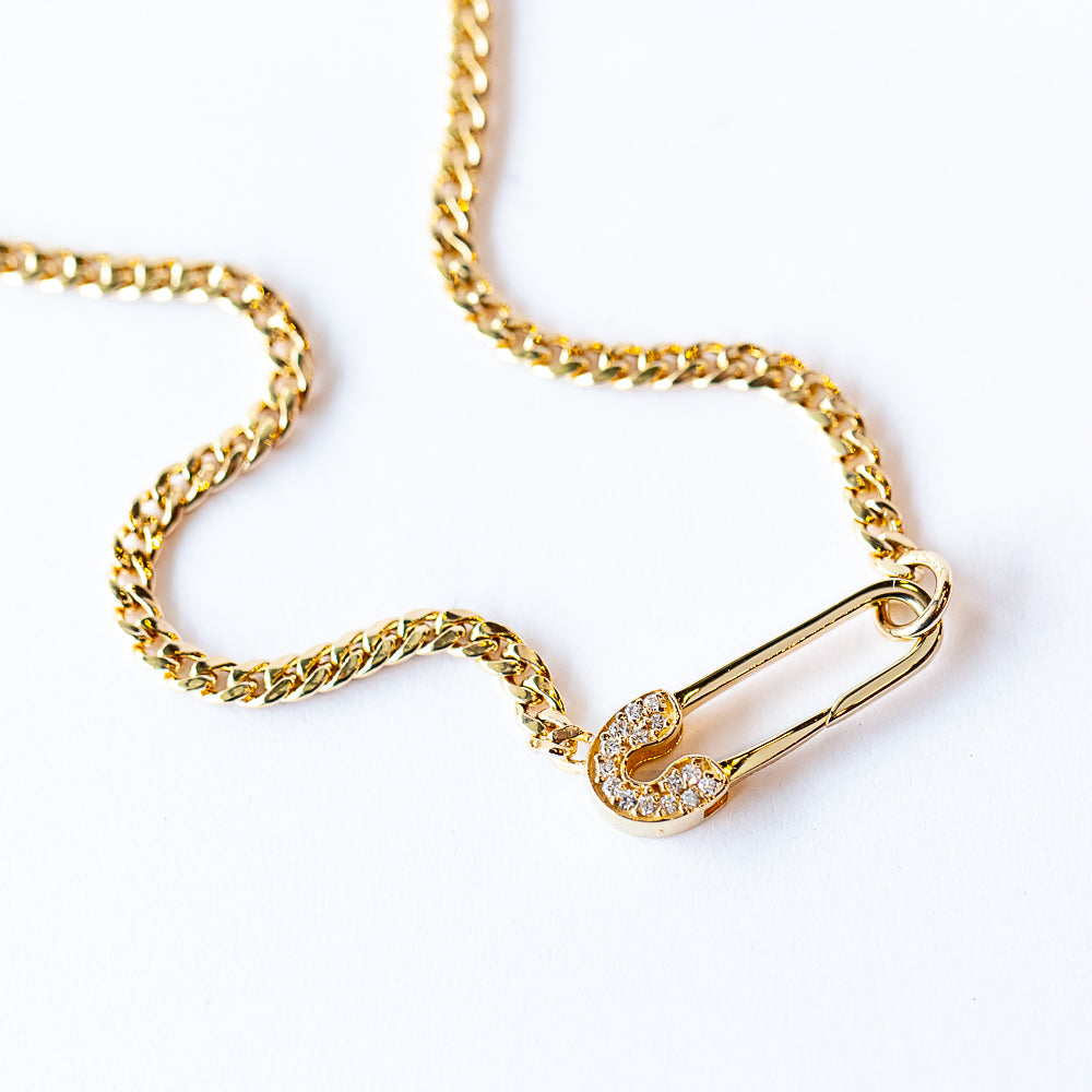 Zoe Chicco | Small Curb Chain Necklace with Pave Diamond Safety Pin Clasp