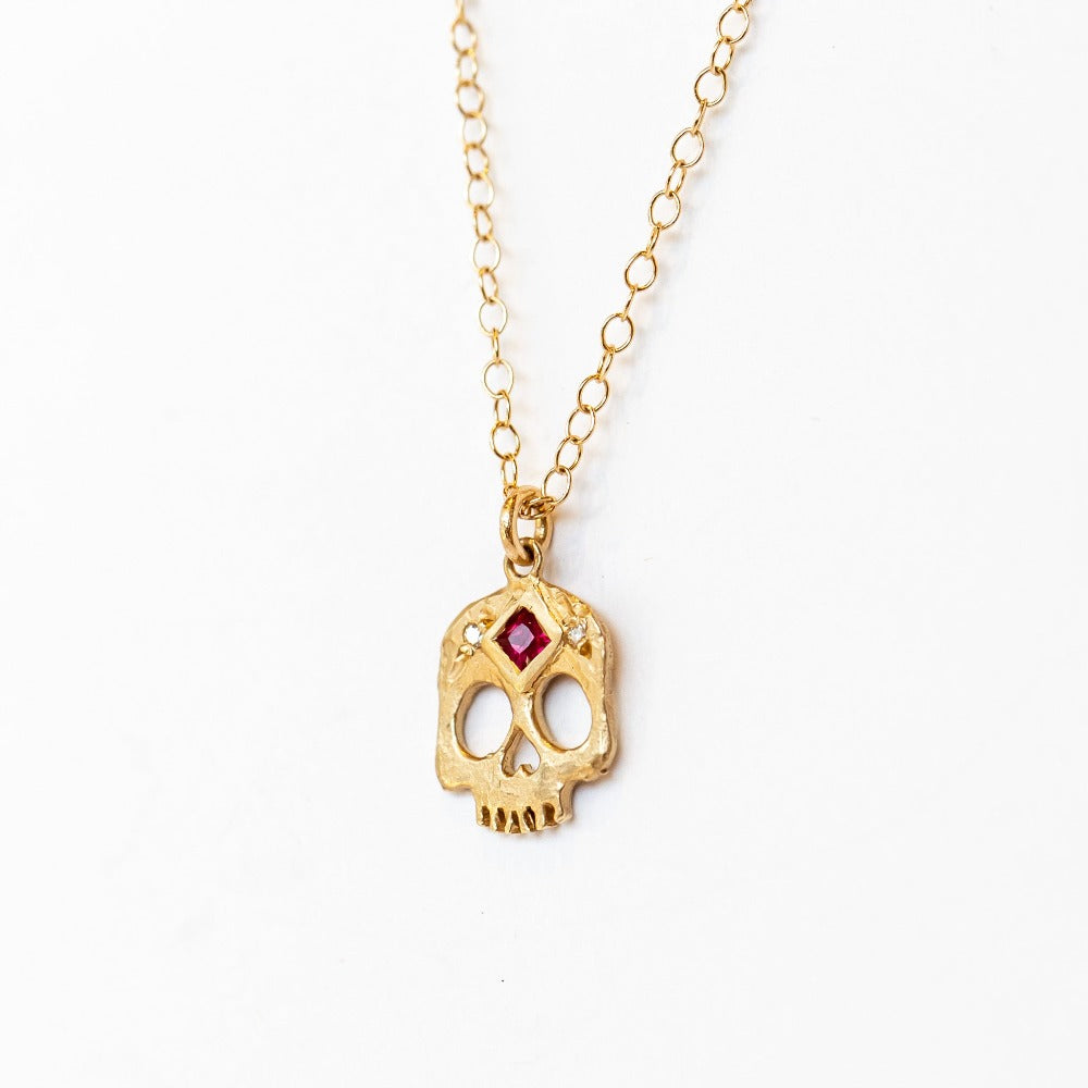 Victoria Cunningham | Third Eye Skull Necklace with Ruby