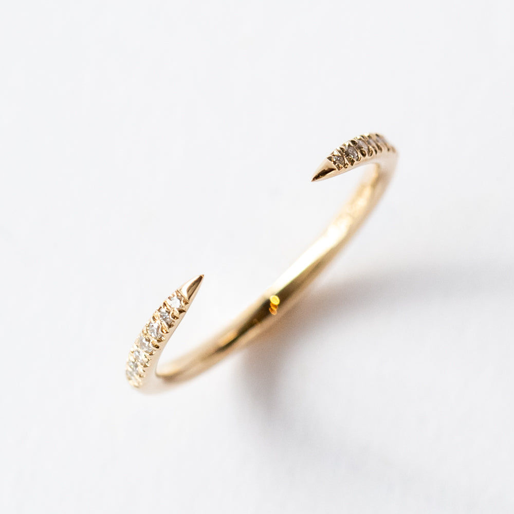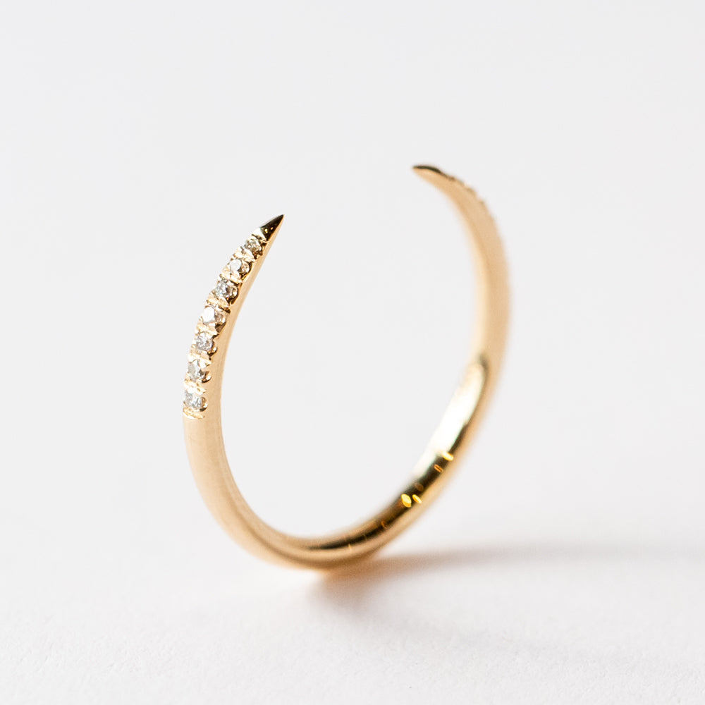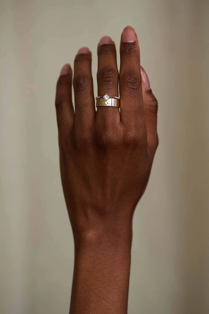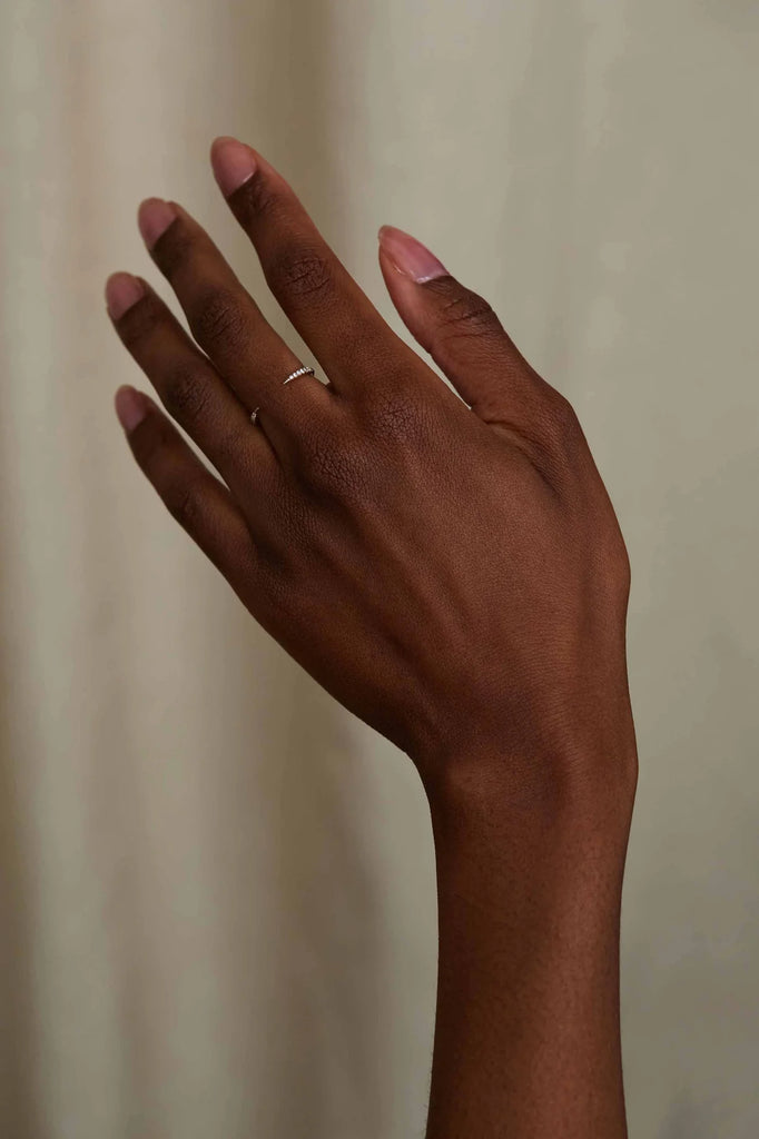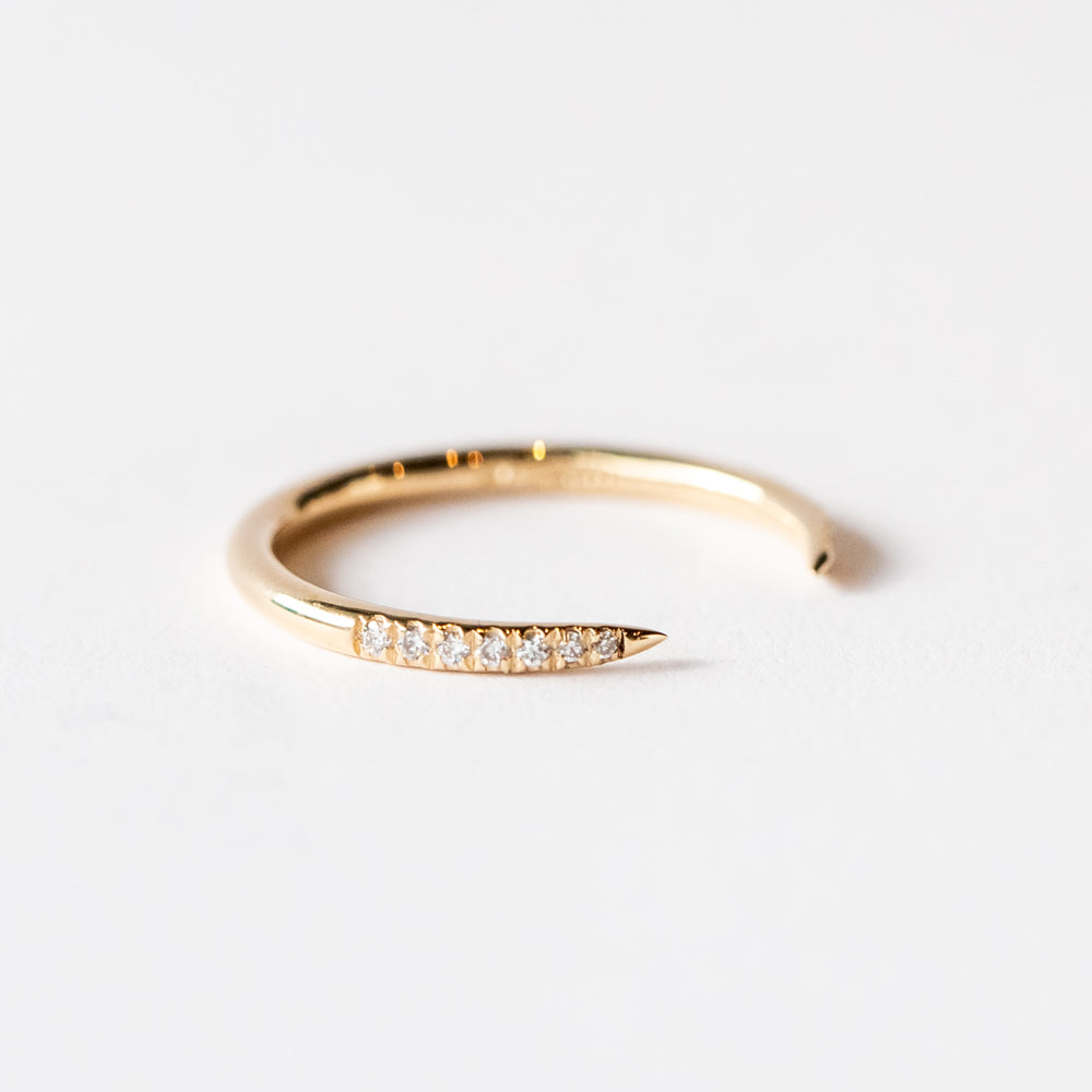 For a sliver of sparkle, this modern gap-style diamond band is our pick. The strikingly graphic shape is understated when worn solo, or a statement when stacked with other rings from your collection.