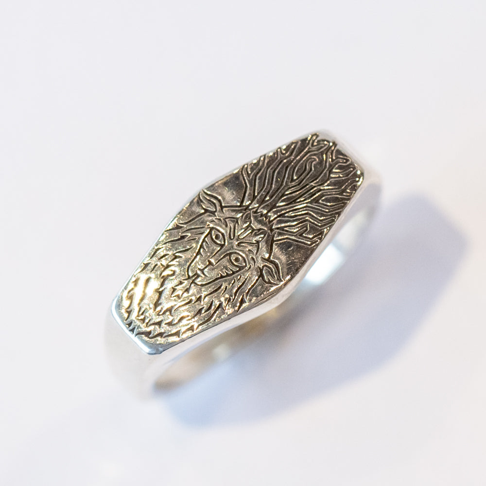 Whether you're drawn to the symbolism of protection, the mystique of the wild, or just love a statement piece with serious edge, this ring is a wearable talisman. The oxidized finish highlights every fine detail, giving it a timeworn, artifact-like feel. Rugged yet refined, it's perfect for anyone who feels most at home under the canopy of trees—or just wants a little extra enchantment in their everyday look.