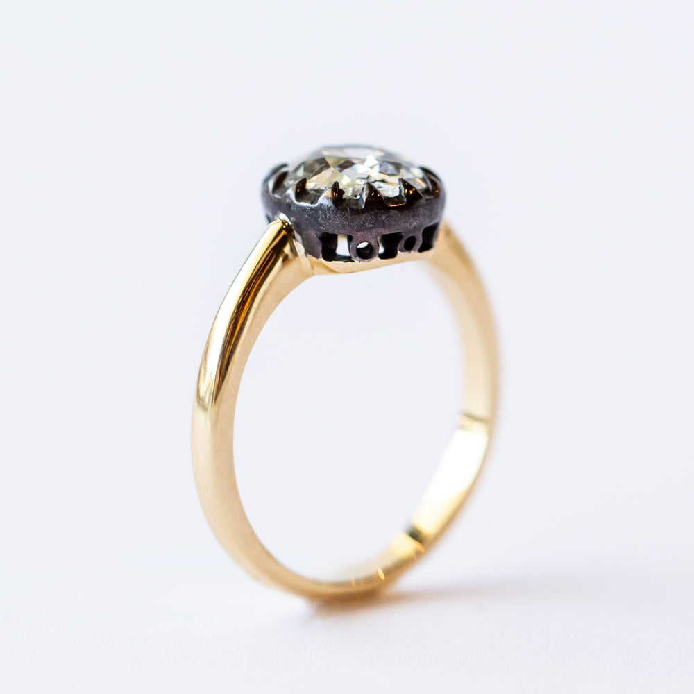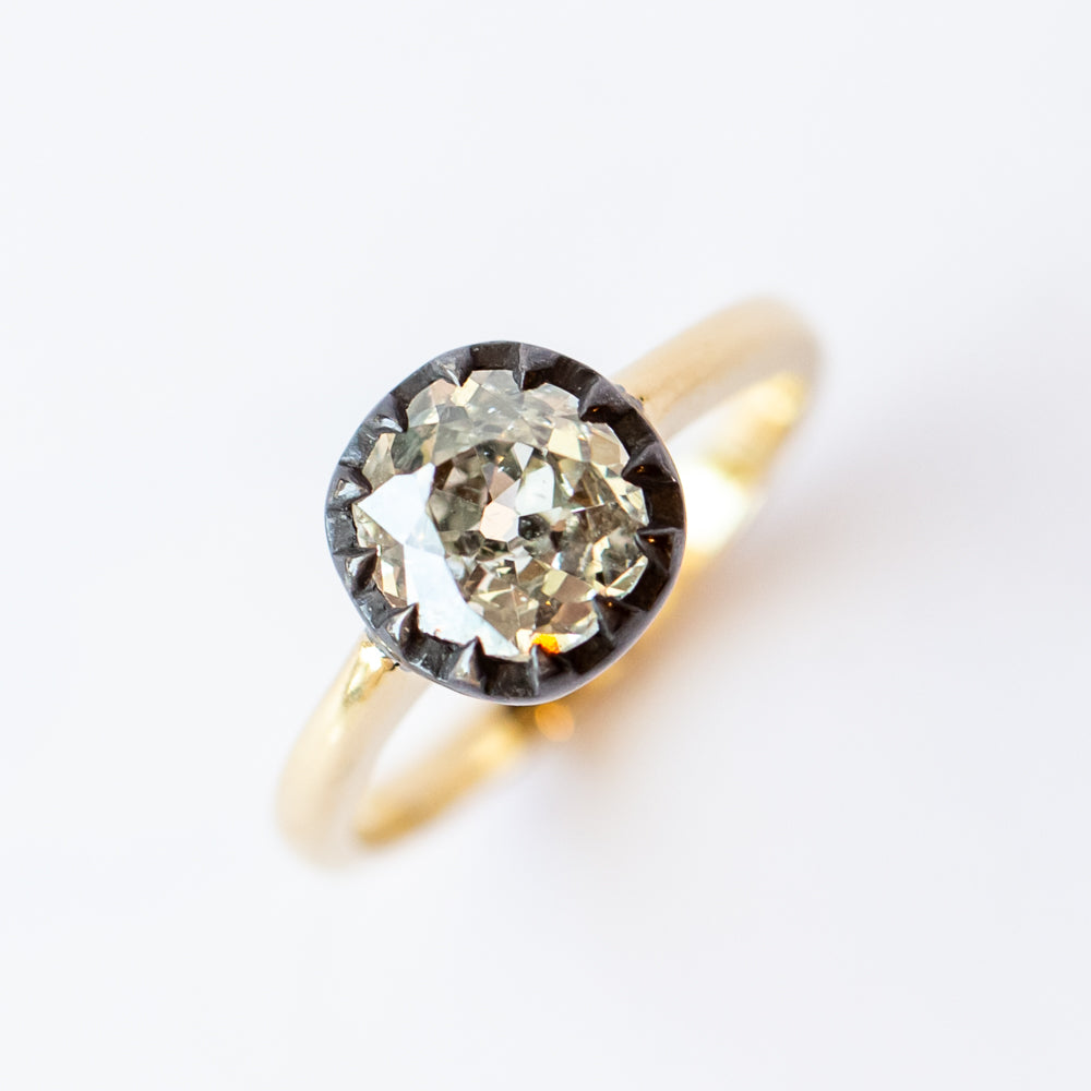 1.35ct, H color, SI2 clarity, old mine cut diamond
