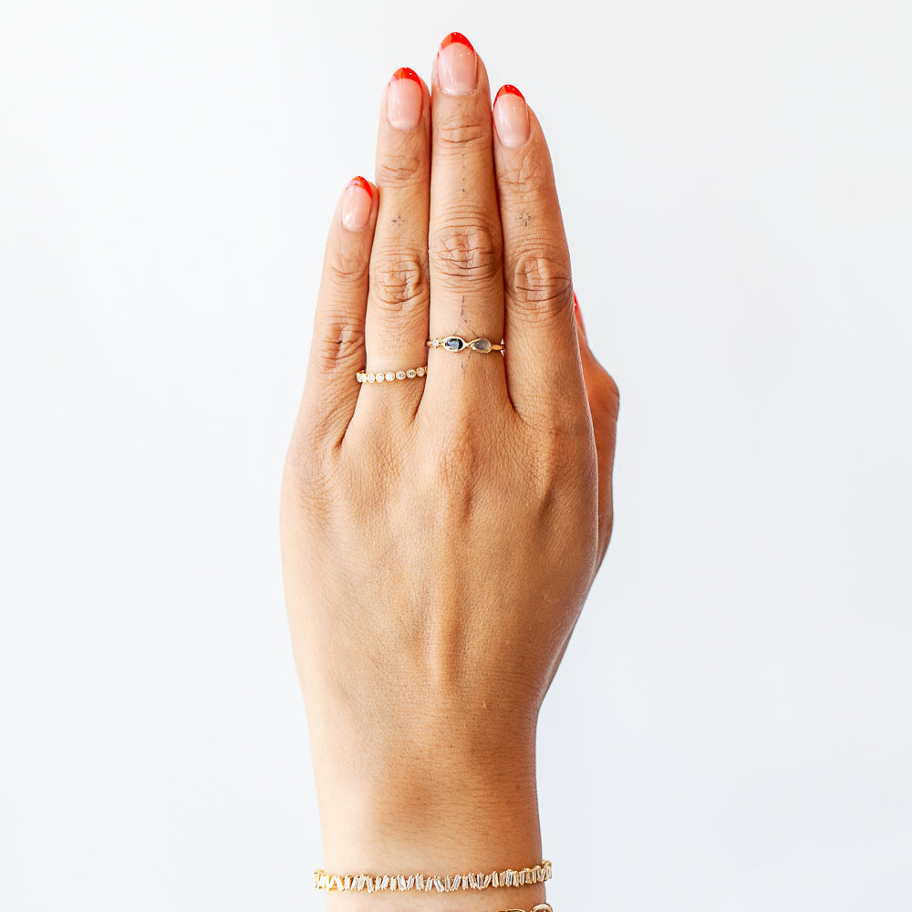 Mix a little moodiness into your everyday ring stack with the Marina Unicorn ring from Misa.