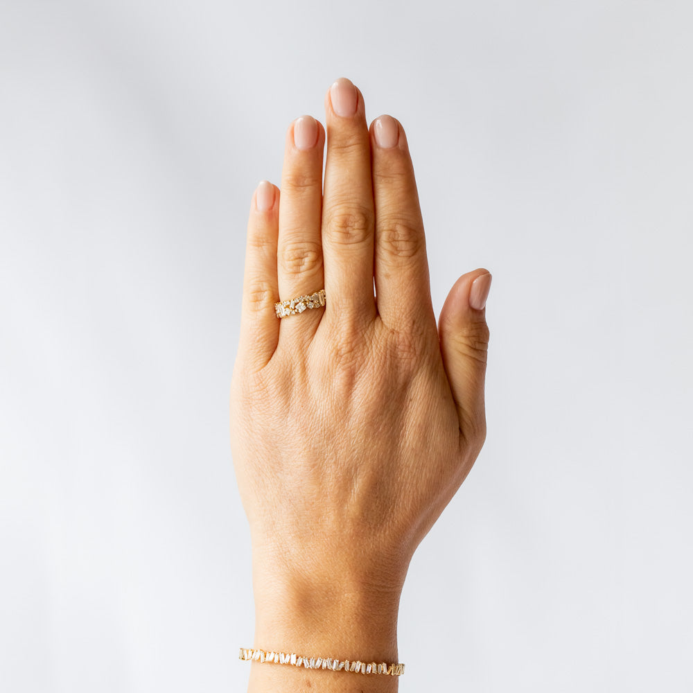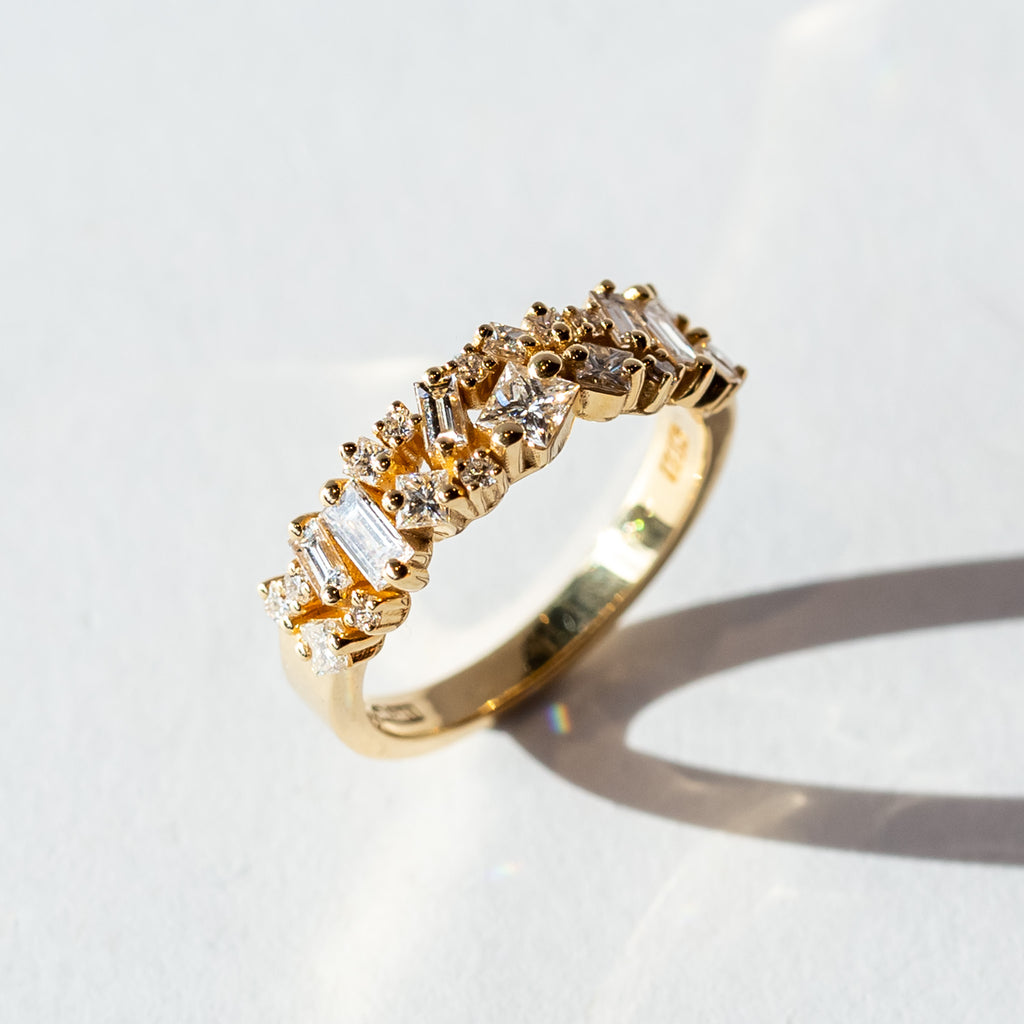 Embrace timeless romance and modern artistry with the La Fantaisie Diamond Half Band from Suzanne Kalan. This exquisite piece is a symphony of light, featuring 0.87 carats of alternating baguette and princess-cut white diamonds, each meticulously chosen for their radiance and clarity.
