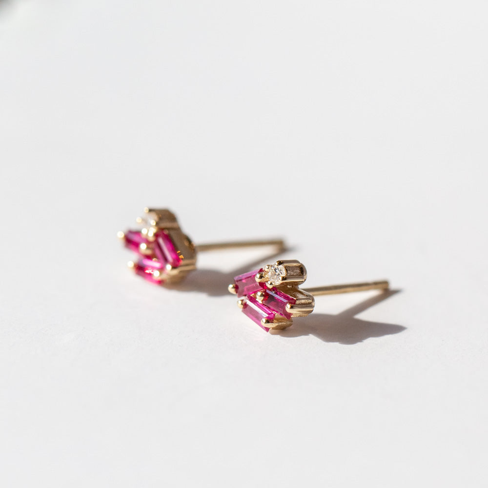 Whether you're shopping for July birthstone jewelry or looking for timeless holiday gifts for women, these studs are a versatile choice. Rubies symbolize passion and protection, making them not just beautiful but deeply meaningful. Wear them with everything from a tailored blazer to a sweeping gown—they’ll make every outfit feel more elevated and unique. We also love them in a stack up your ear with other fun studs and hoops.