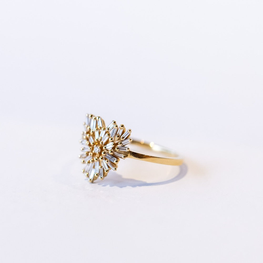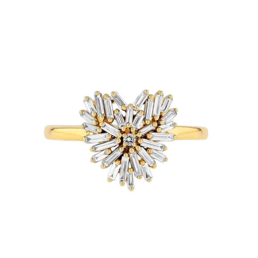 A fresh take on a timeless symbol, the Small Diamond Heart Ring is Suzanne Kalan’s modern twist on classic romance. Crafted in 18k yellow gold, this stunning diamond heart ring features a mix of baguette and round white diamonds, forming a beautifully contemporary heart shape that sparkles from every angle.