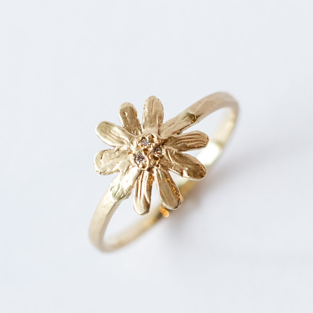 For all the nature lovers—this beautiful little daisy ring from Victoria Cunningham is the perfect pick. Handcrafted in the designer's signature textured gold, the flower is set with tiny sparkling diamonds at its center.