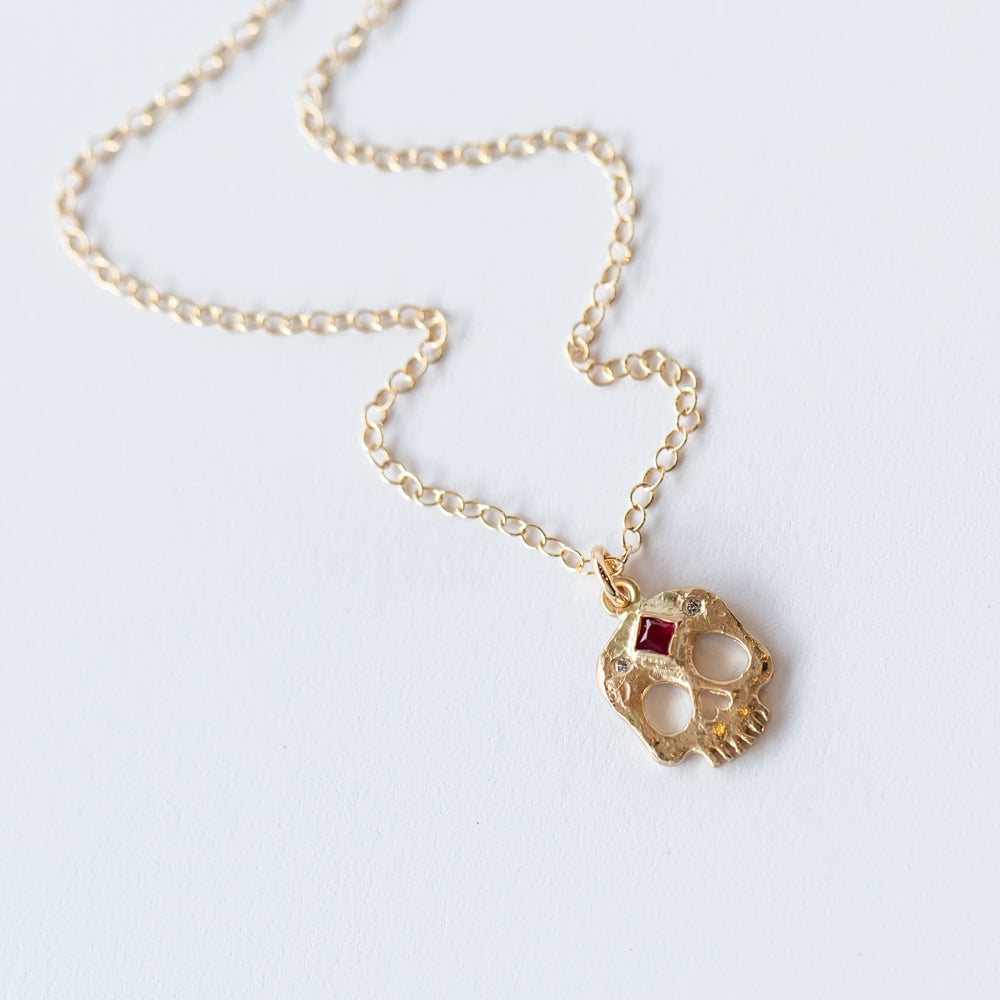Victoria Cunningham | Third Eye Skull Necklace with Ruby