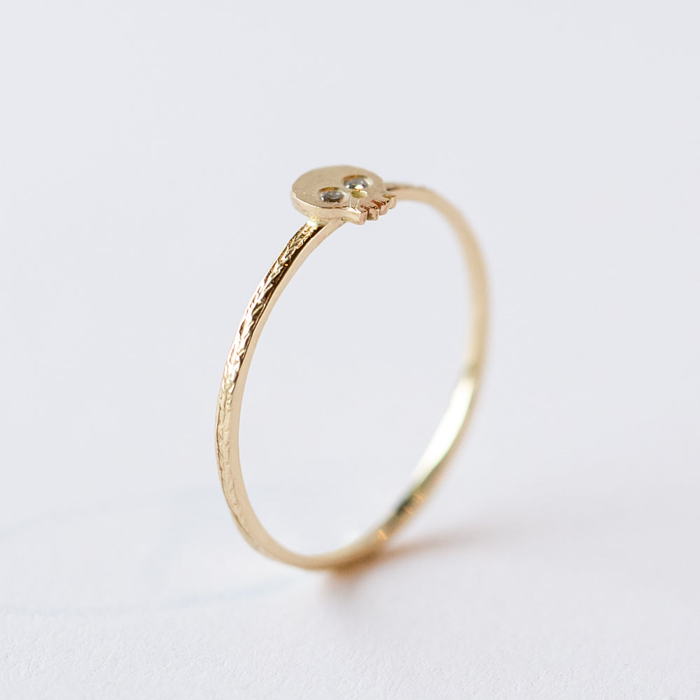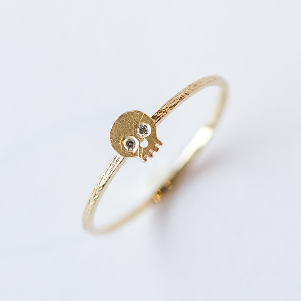 Victoria Cunningham | Tiny Skull Ring with Diamond Eyes