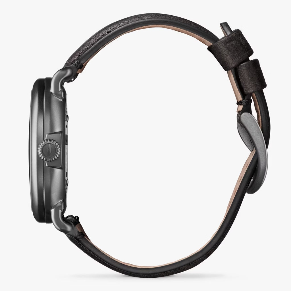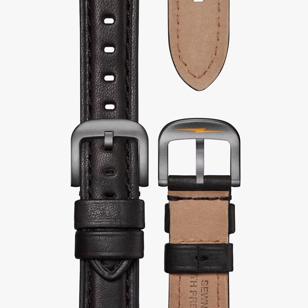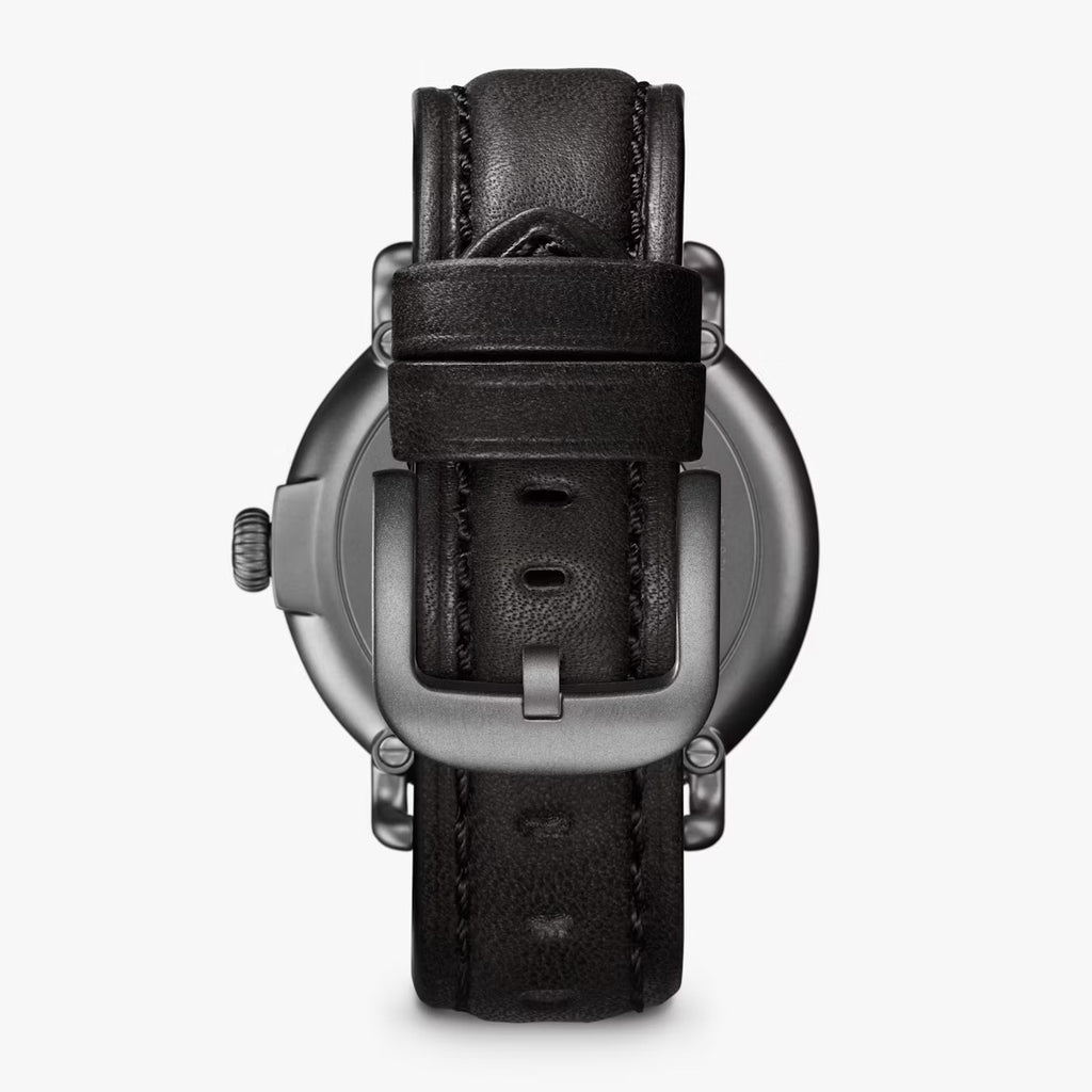 Because nothing says American design like a classic camouflage, we went ahead and crafted our own. Introducing our flagship timepiece, decked out with signature Shinola Brown Oak camo custom-made to dress up, dress down, and look as good in the field as it does out to dinner. Accompanying this instant classic: The Runwell 41mm design you know and love, plussed-up with a gunmetal finish, four-layer Super-LumiNova lum, and black leather strap.