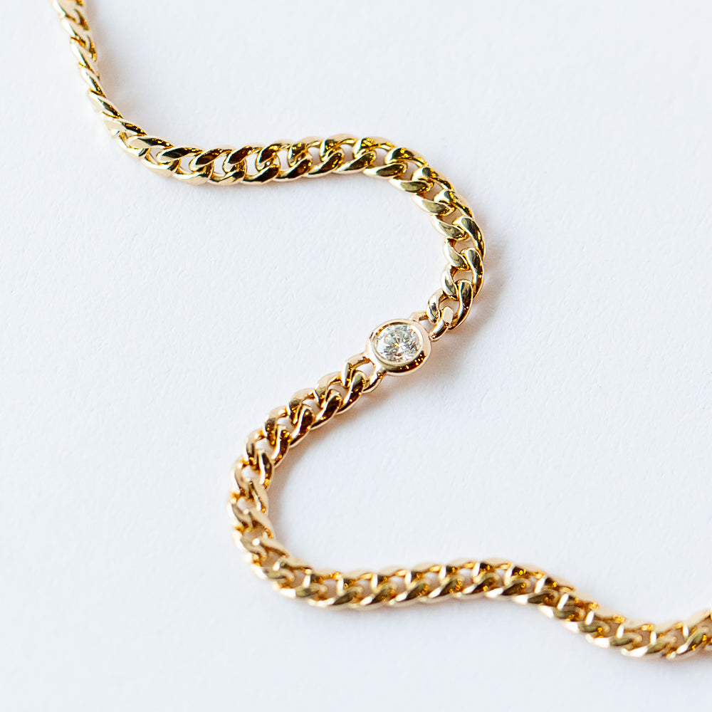 Zoe Chicco | Small Curb Chain Bracelet with Floating Diamond