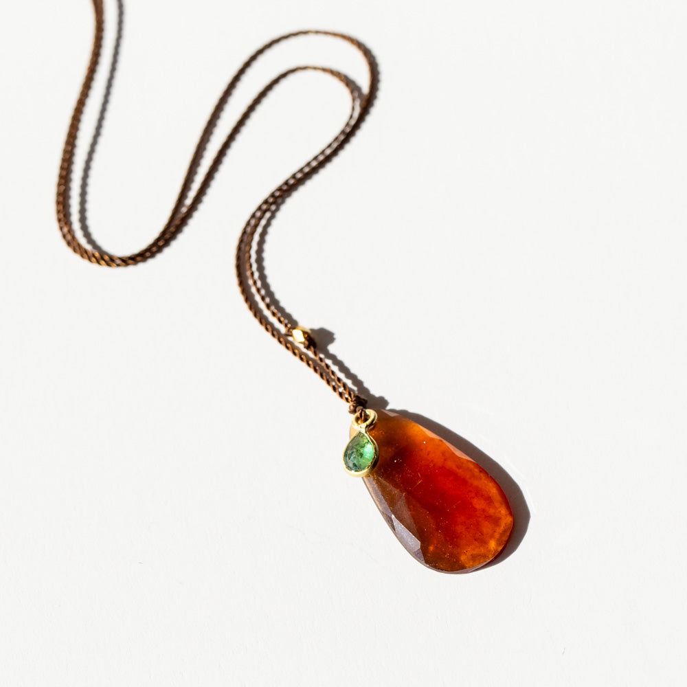 Margaret Solow | Hessonite Garnet Slice Necklace with Emerald Dangle