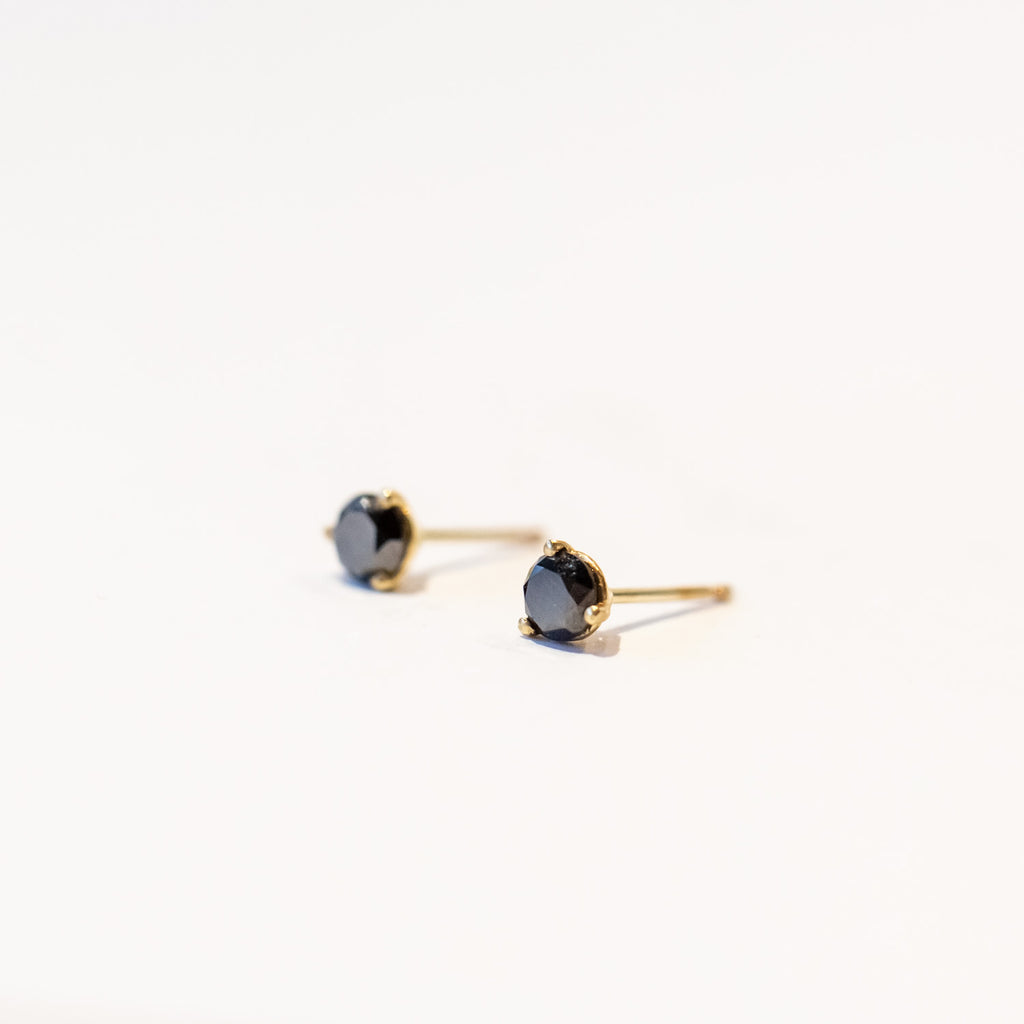 Everyones favorite studs in a black diamond version! The heat-treated black diamonds are set in a 14k recycled yellow gold modern prong setting.