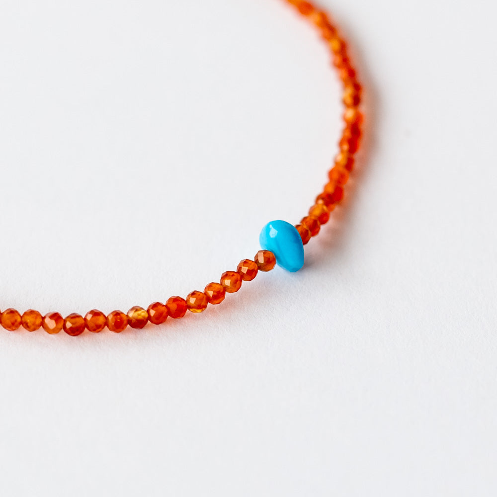 Margaret Solow | Carnelian Beaded Bracelet with Round Turquoise Bead