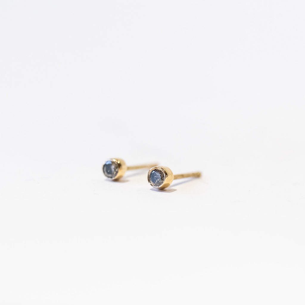Cognac diamond stud earrings bezel set in 14k yellow gold