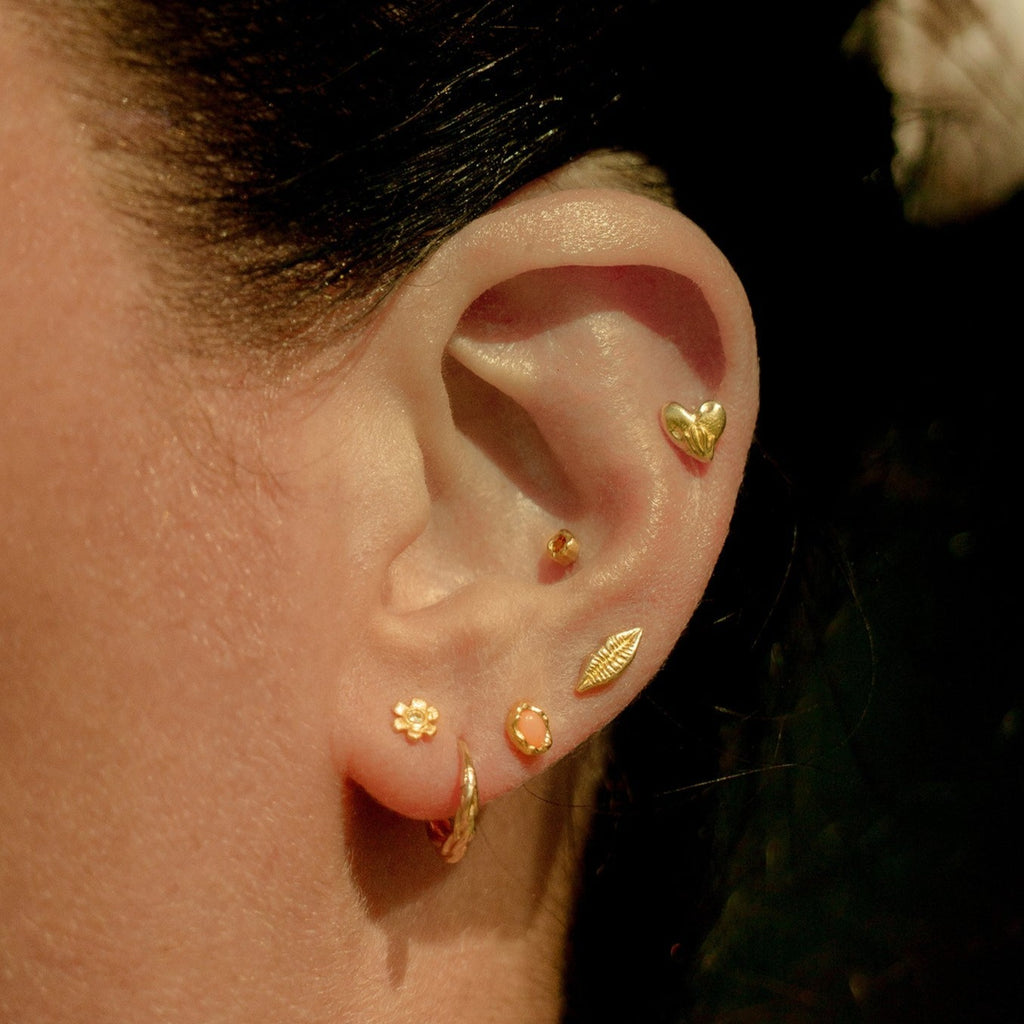 A delicate daisy, centered by a sparkling diamond, features petals crafted in 14K yellow gold with a unique, organic finish. An elegant way to showcase your dainty piercing, this stud is the perfect option for helix, lobe, and tragus piercings.