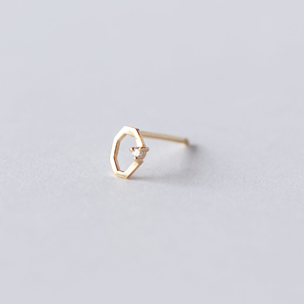 Wwake | Diamond Octagon Frame Stud Earring (Single)