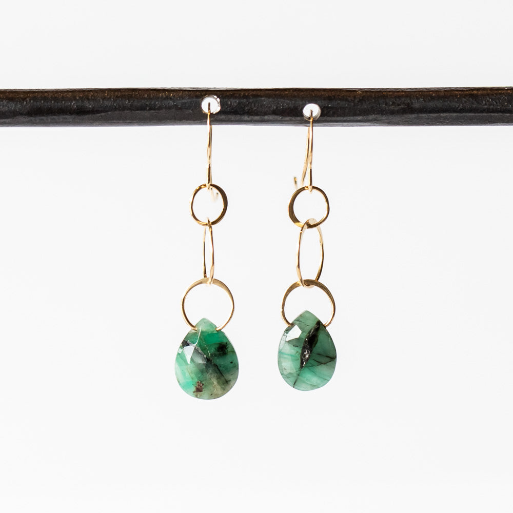 Faceted emerald drop earrings set in 14k yellow gold