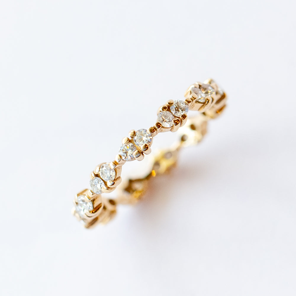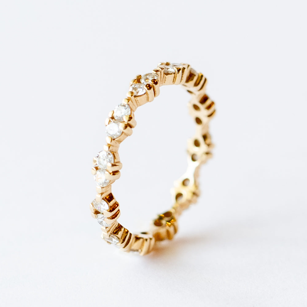 This eternity band features sets of coupled diamonds that mimic our classic Demi-Paired Ring style.
