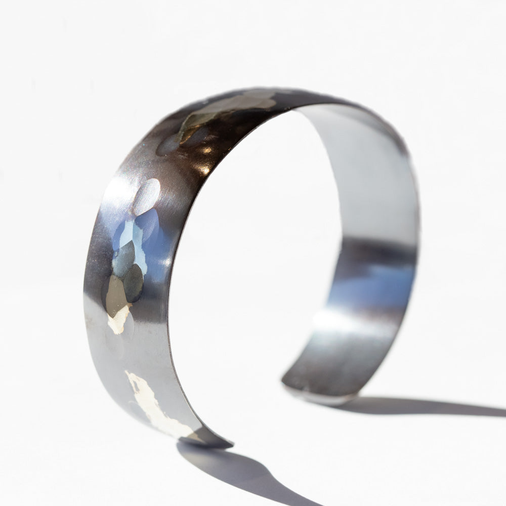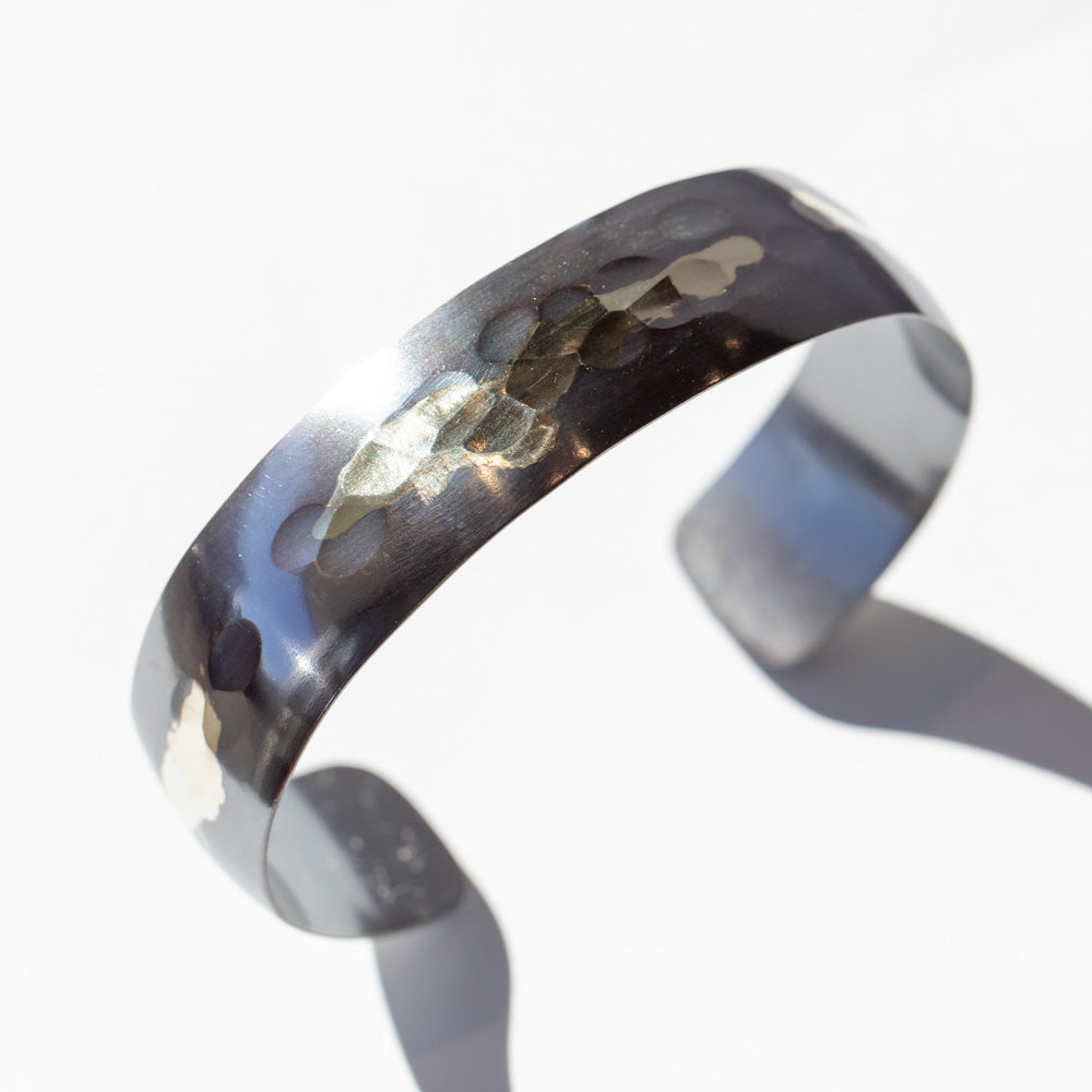 Hammered oxidized sterling cuff bracelet with 18k yellow gold detail