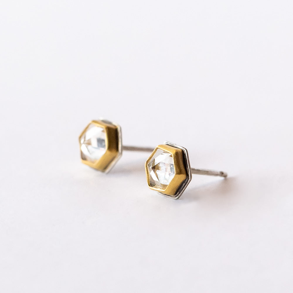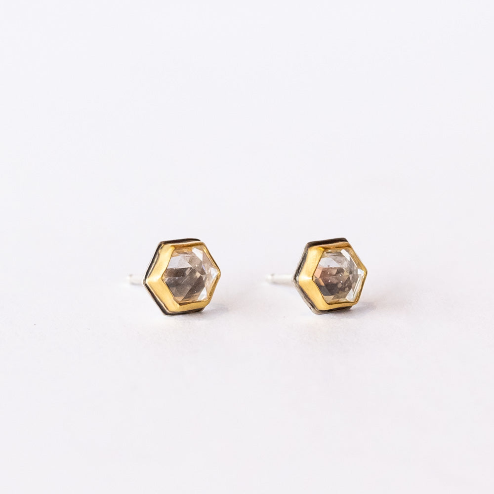 Ananda Khalsa | Hexagon White Sapphire Stud Earrings
