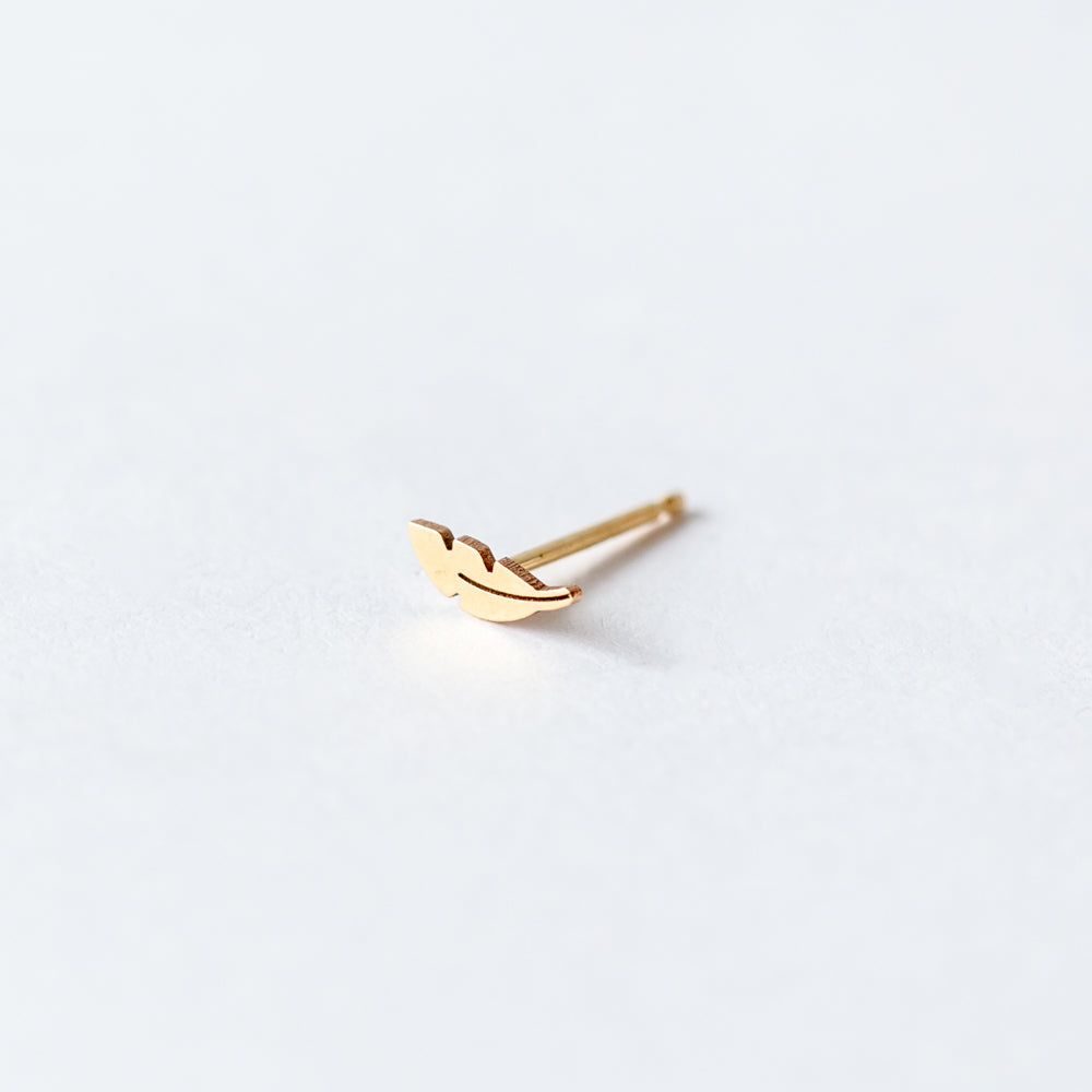 Add a wisp of nature and beauty to your ear stack with this dainty gold stud earring. The earring is shaped like a gently curved feather with engraved detail, floating on the wind.