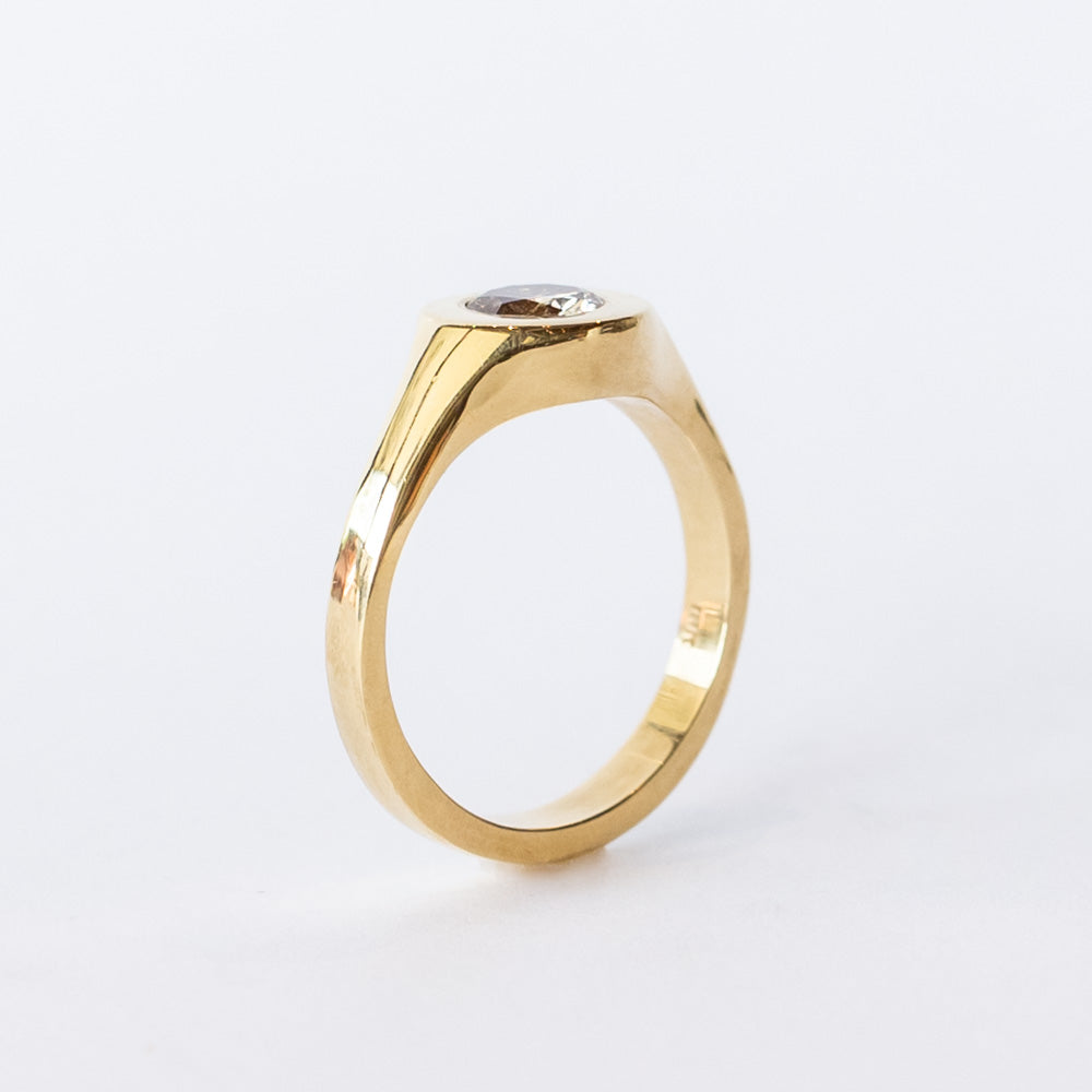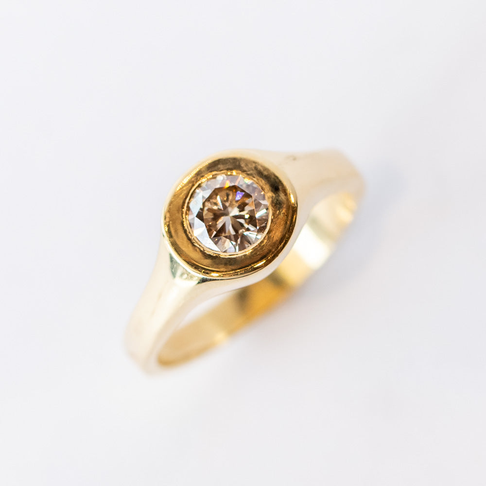 Round .59ct champagne diamond bezel set in 18k yellow gold