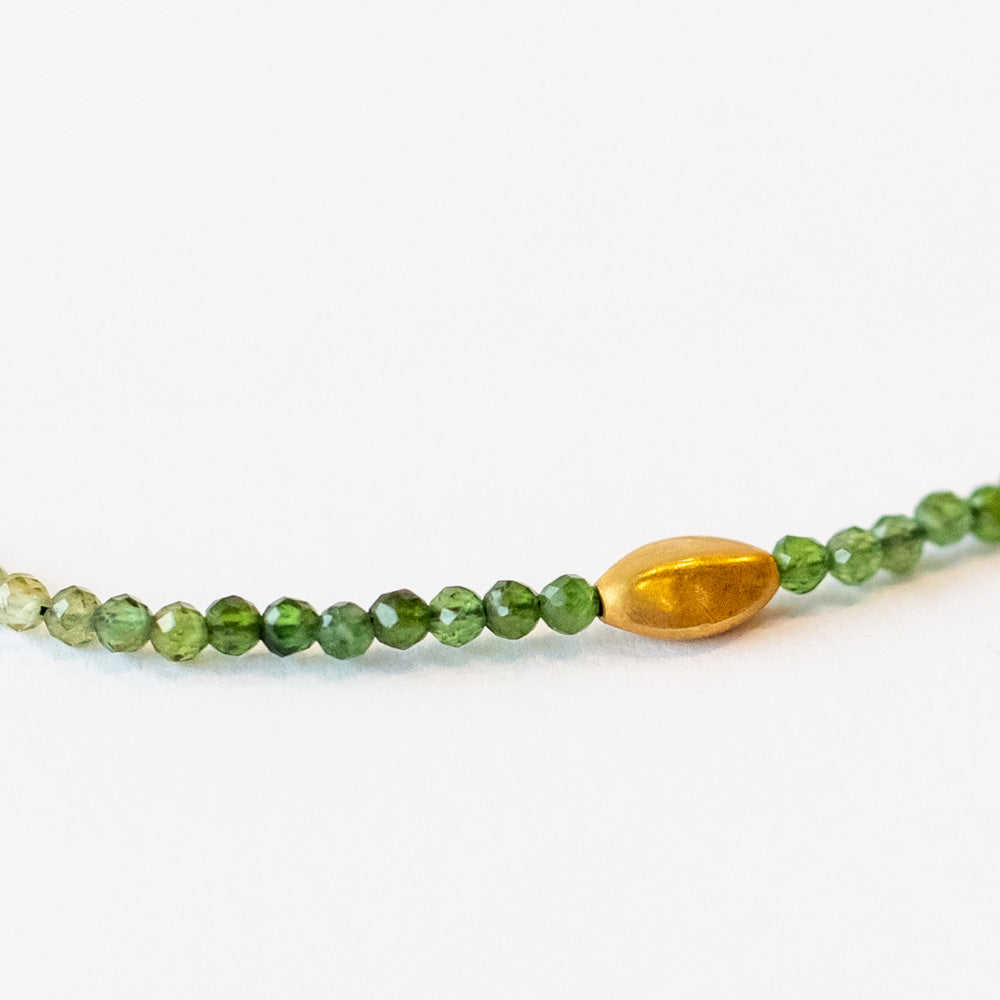 Margaret Solow | Light and Dark Green Tourmaline Bracelet with Gold Bead
