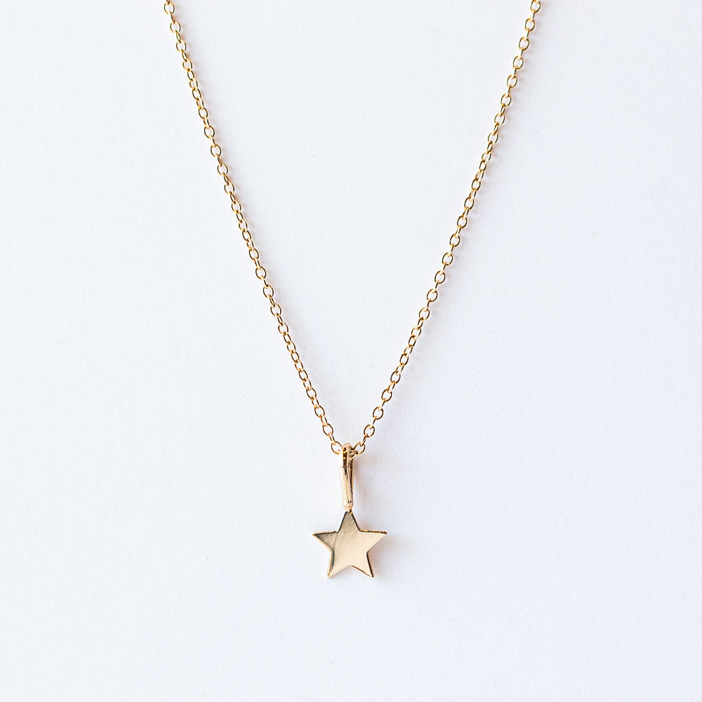A petite star charm in polished 14k yellow gold, perfect for layering or wearing solo. Its minimalist design adds a subtle celestial touch, bringing everyday sparkle and personality to any chain or charm stack. Wear it alone for a delicate accent or mix it with other charms for a playful, personalized look.