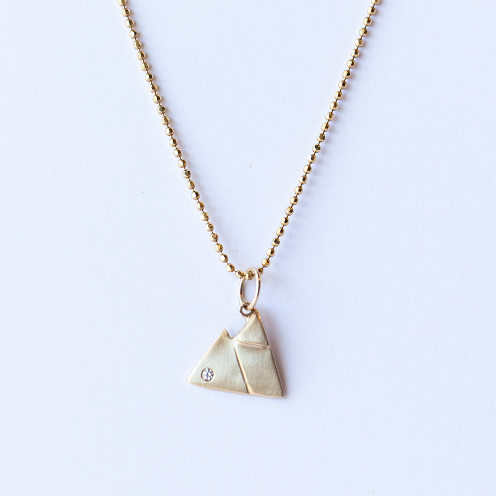 This little mountain charm brings major golden hour energy. Crafted in solid 14k yellow gold with a double-peaked silhouette, it features a single sparkling diamond tucked in the lower corner. A grounding symbol of strength, exploration, and inner calm, it’s a meaningful addition to any charm story.